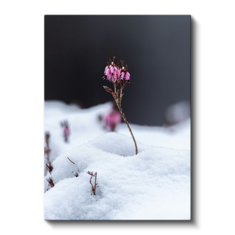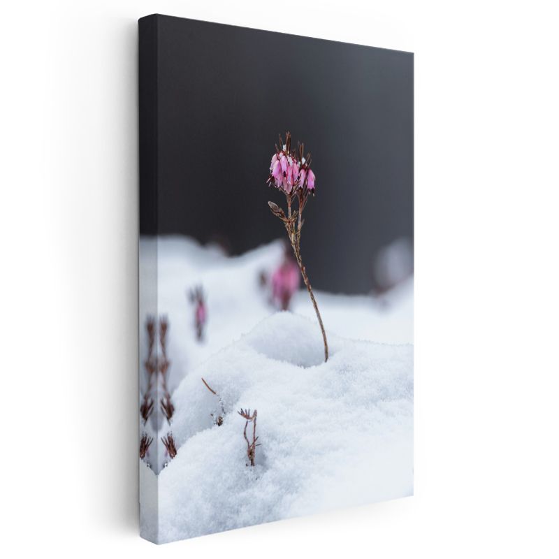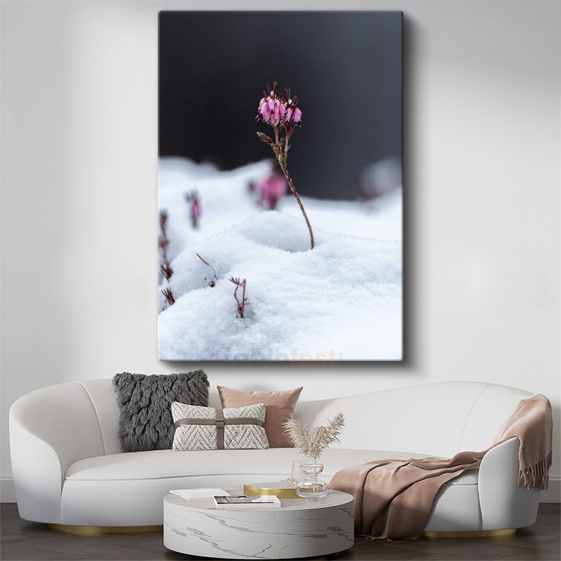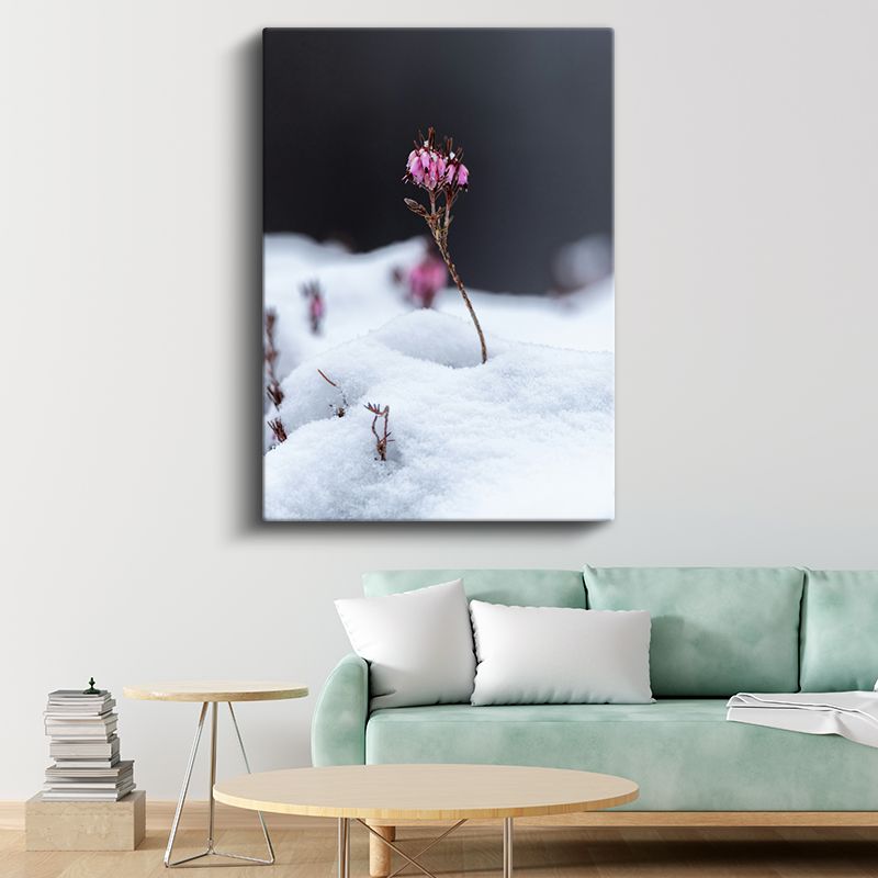 Kış Çiçeği - Karlı Zeminde Pembe Tomurcuklar Kanvas Tablo