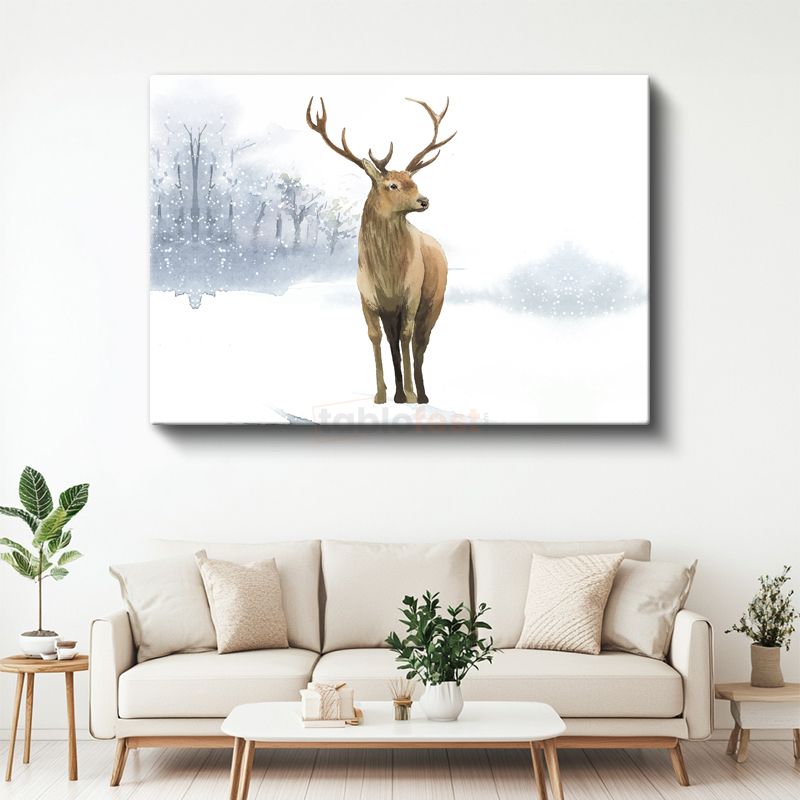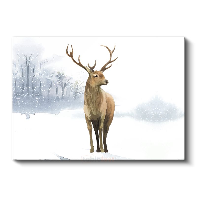 Kış Geyiği - Karlı Ormanda Asil Duruş Kanvas Tablo