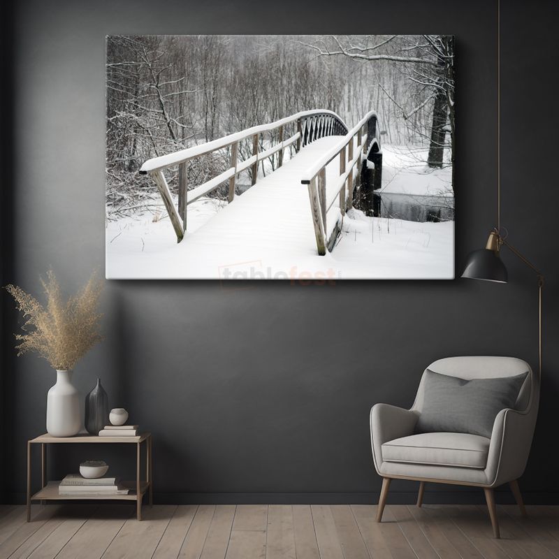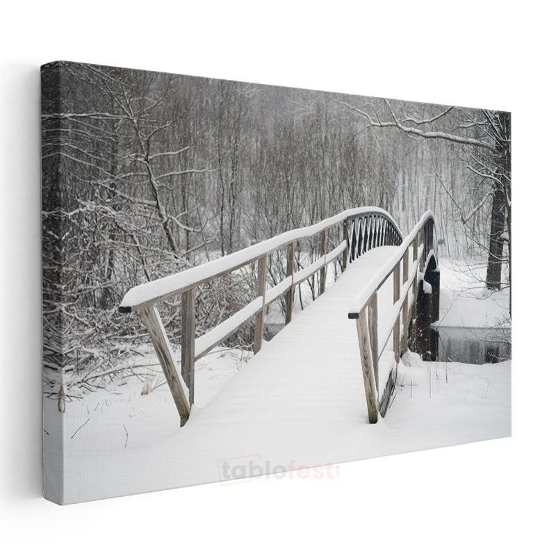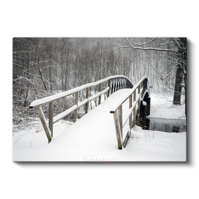 Kış Köprüsü - Beyaz Örtü Altında Ahşap Geçit Kanvas Tablo