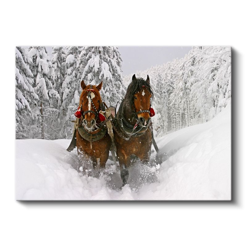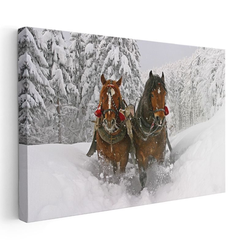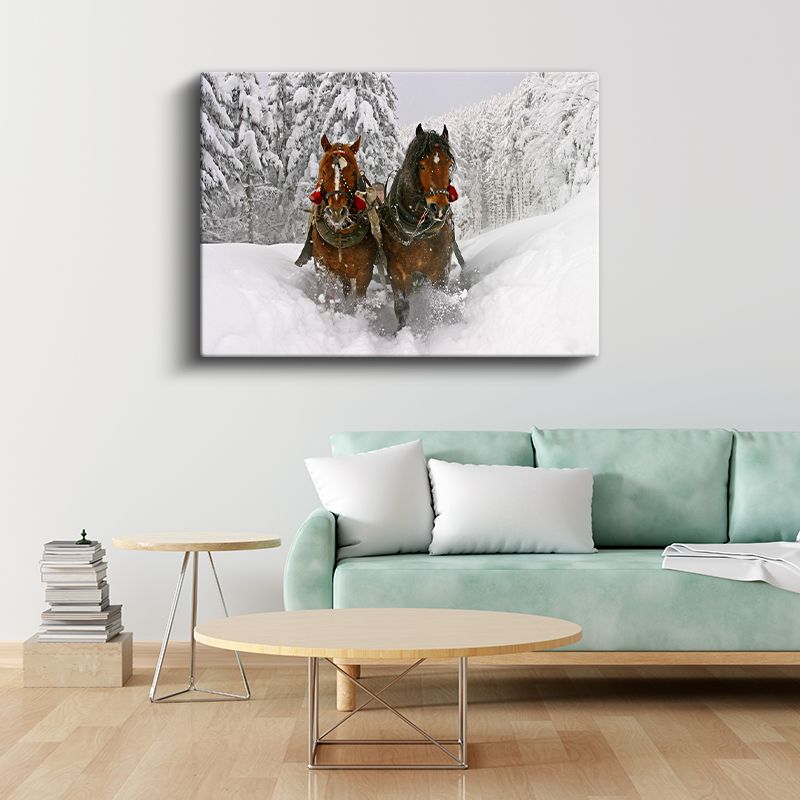 Kış Koşusu - Karlı Yolda İlerleyen Atlar Kanvas Tablo