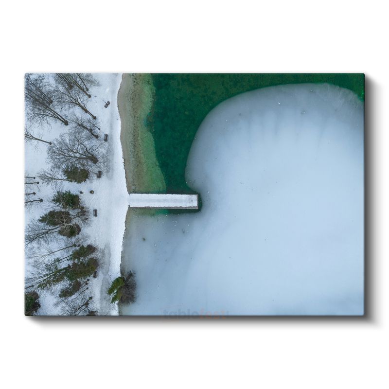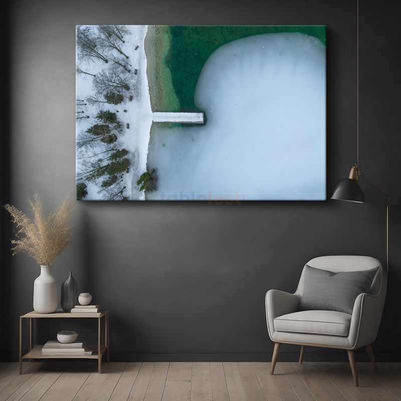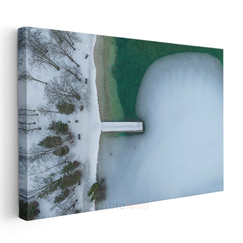 Kış Manzarası - Donmuş Göl ve Karlı Orman Kanvas Tablo