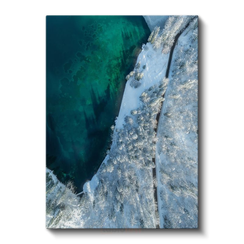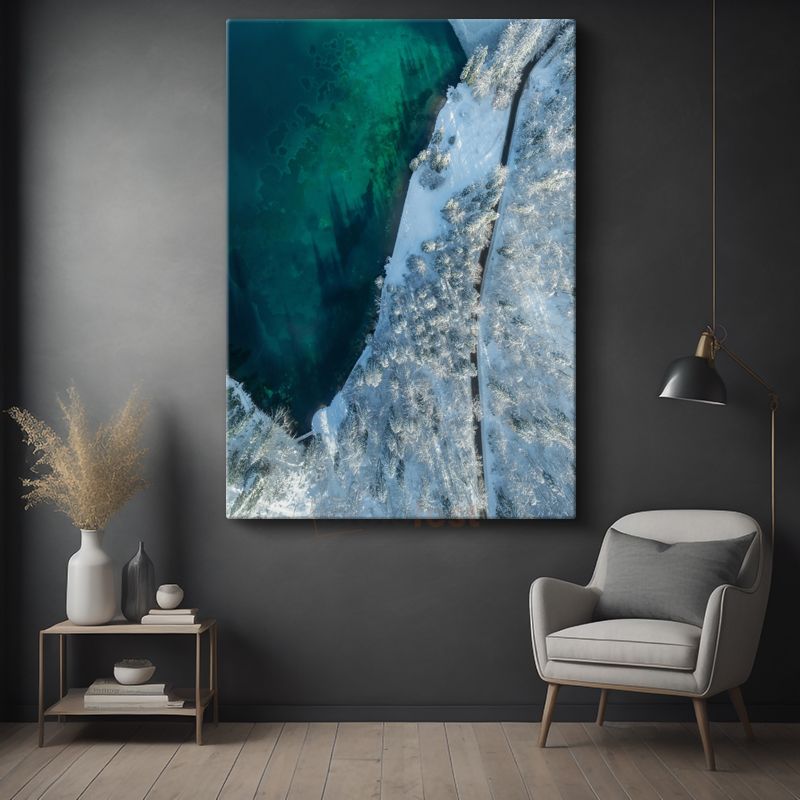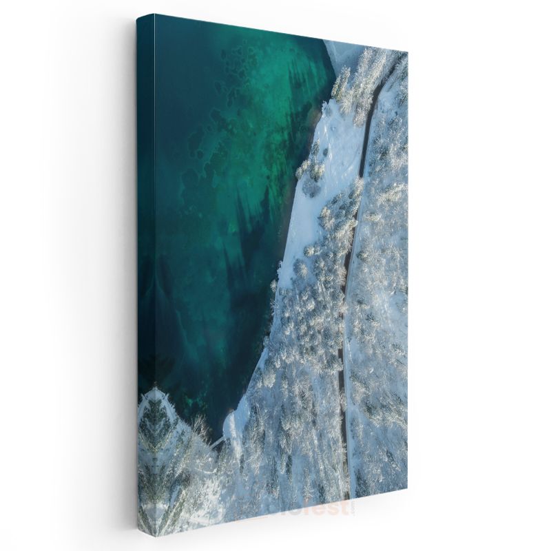 Kış Manzarası - Turkuaz Göl Kenarı Kanvas Tablo