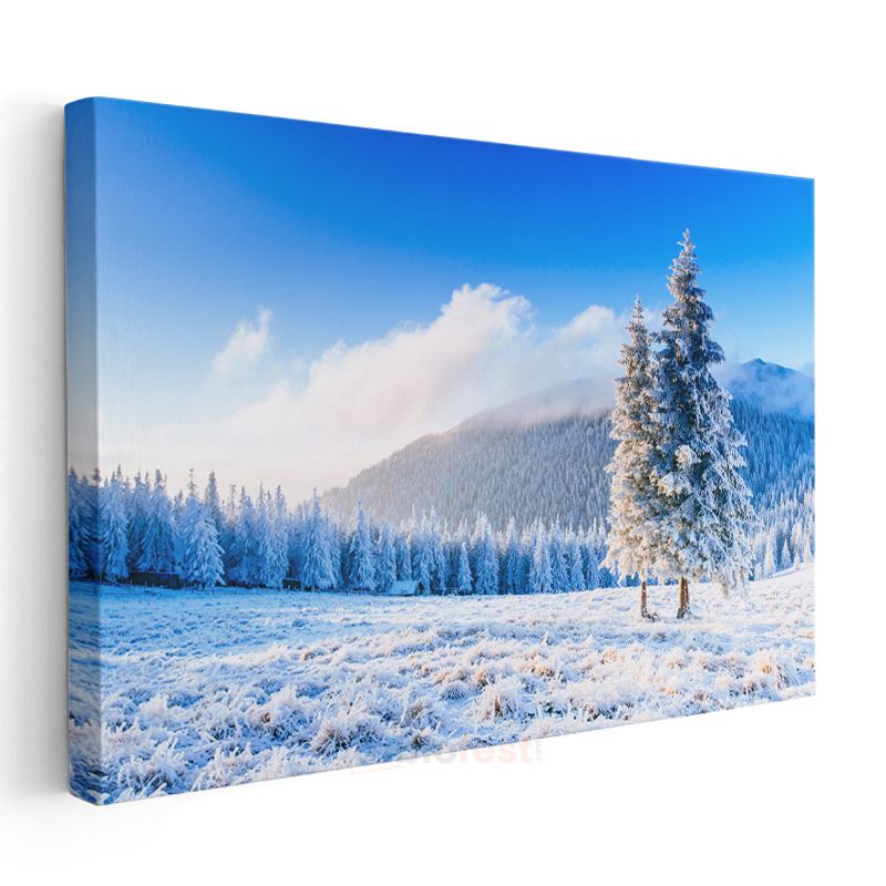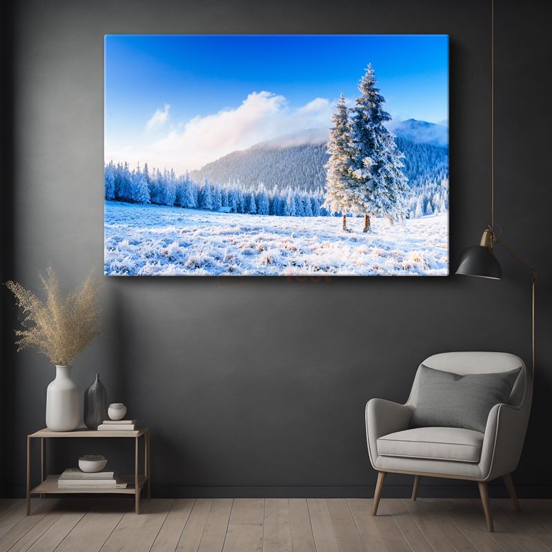 Kış Masalı - Kar Kaplı Çam Ağaçları ve Beyaz Örtü Kanvas Tablo