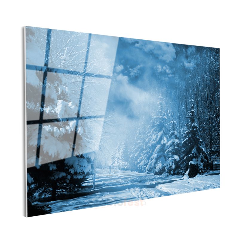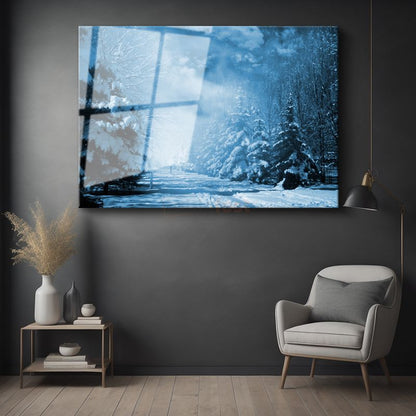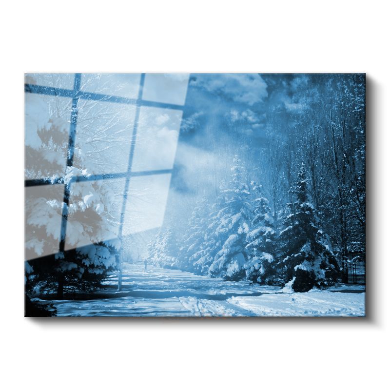 Kış Ormanı - Kar Altındaki Çam Ağaçları Cam Tablo