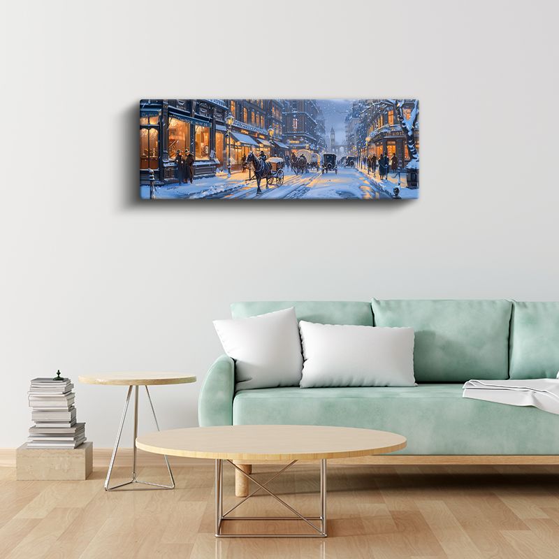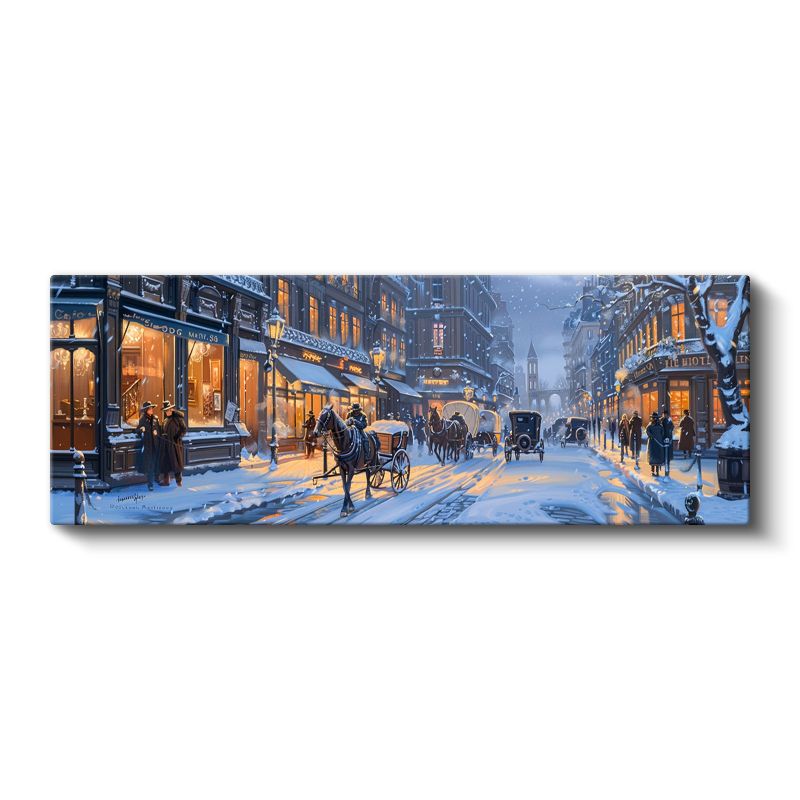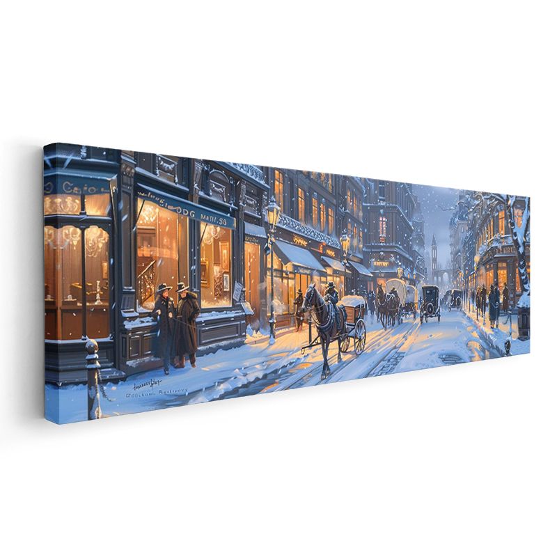 Kış Sokağı - Atlı Arabalar ve Işıklı Dükkanlar Kanvas Tablo