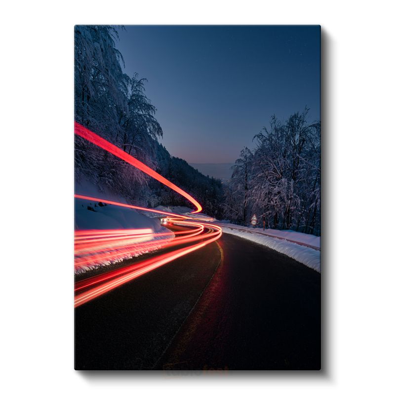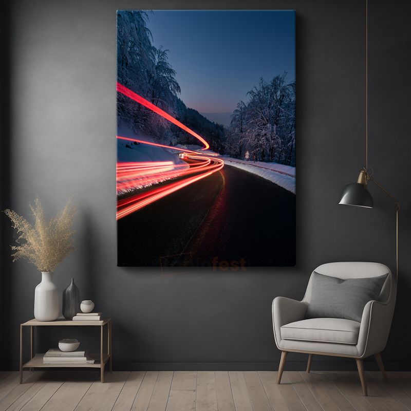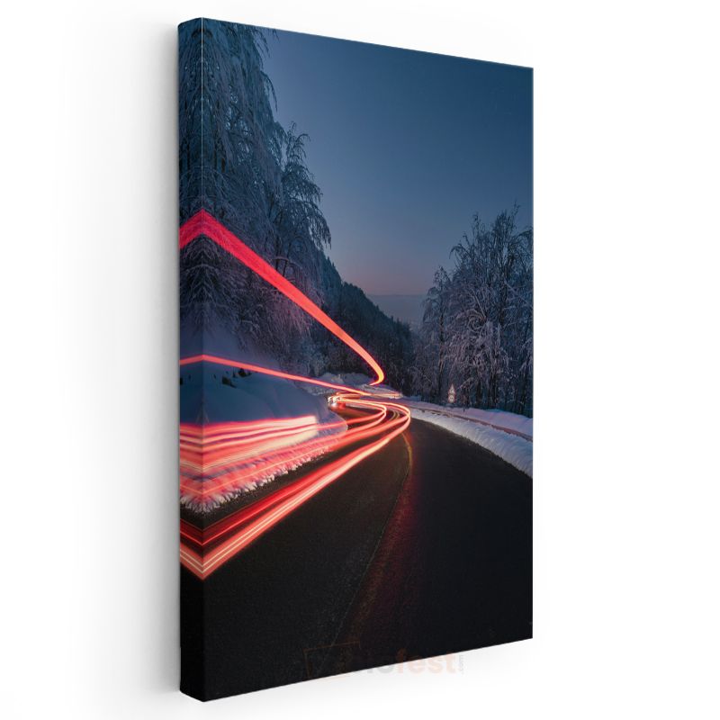 Kış Yolculuğu - Karlı Ormanda Işık İzleri Kanvas Tablo