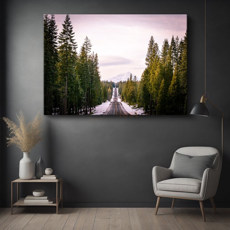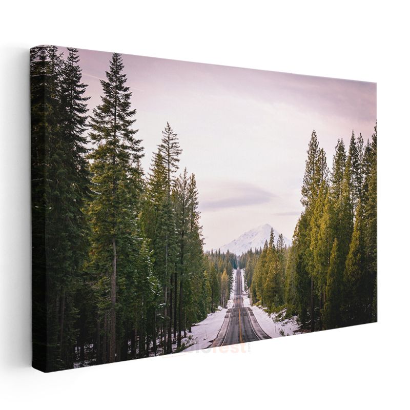 Kış Yolu - Çam Ormanları Arasında Kanvas Tablo