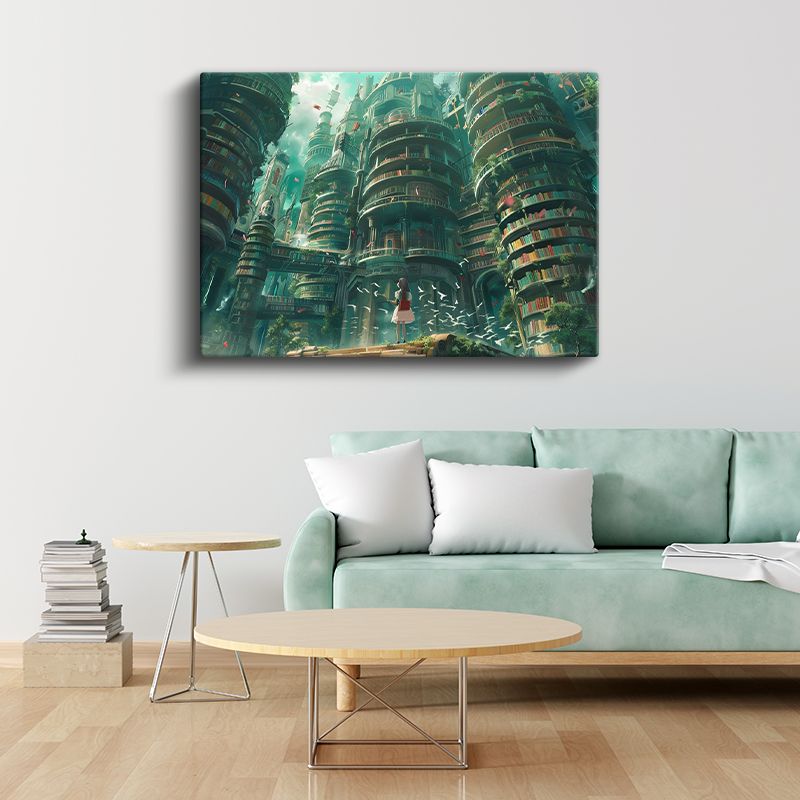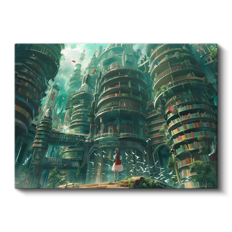 Kitap Kuleleri - Yeşil Şehir Anime Kanvas Tablo