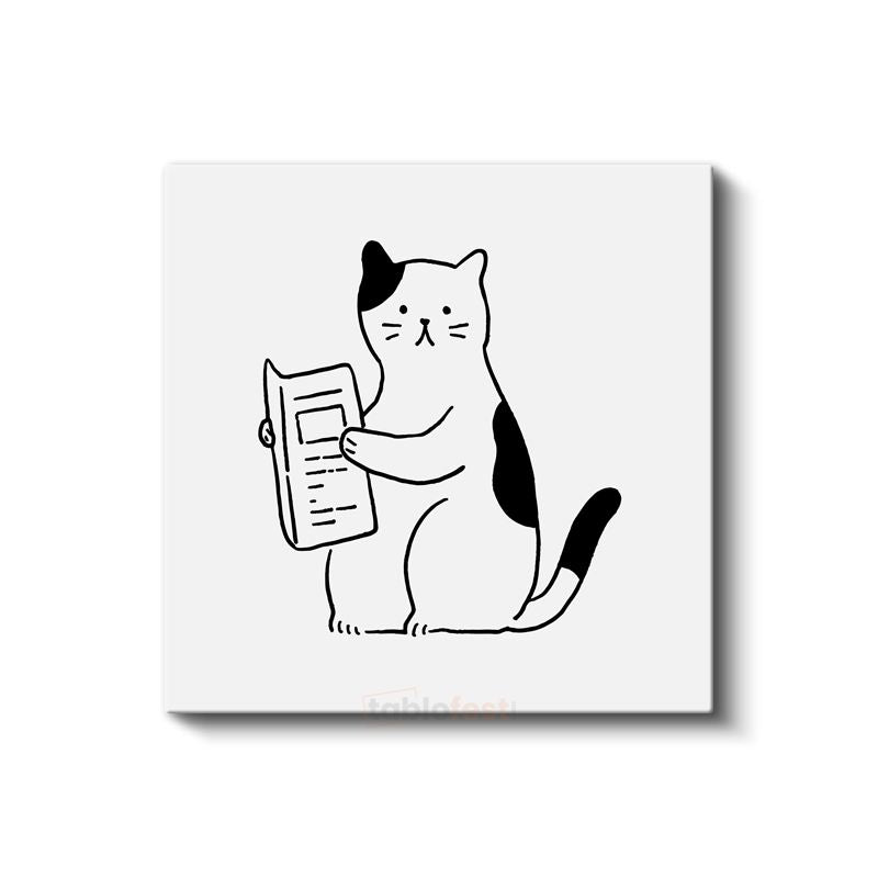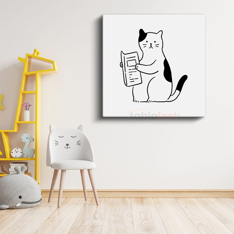 Kitap Okuyan Kedi - Meraklı Öğrenci Kanvas Tablo