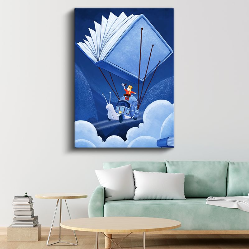 Kitap Paraşütü - Hayal Gücü Yolculuğu Kanvas Tablo