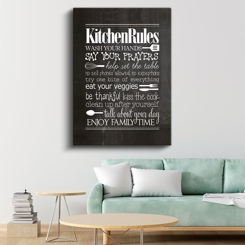 Kitchen Rules - Mutfak Kuralları İngilizce Tipografi Kanvas Tablo
