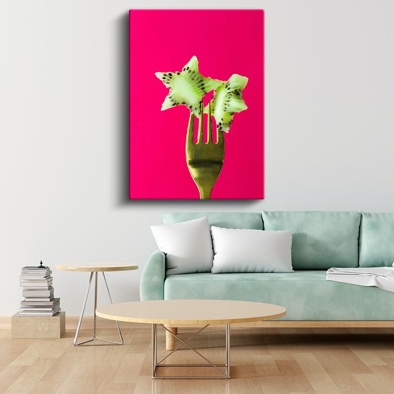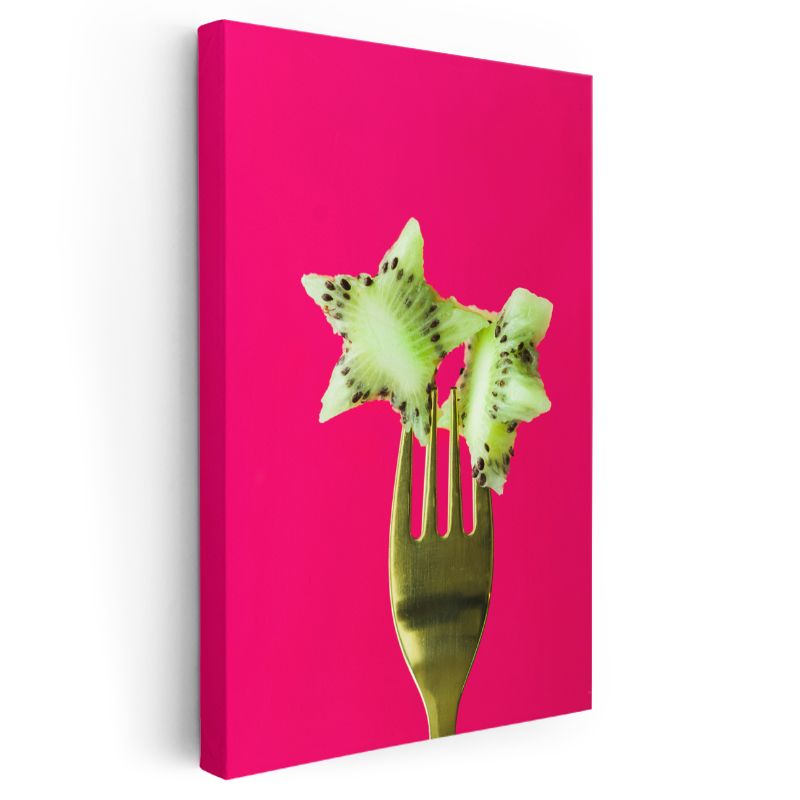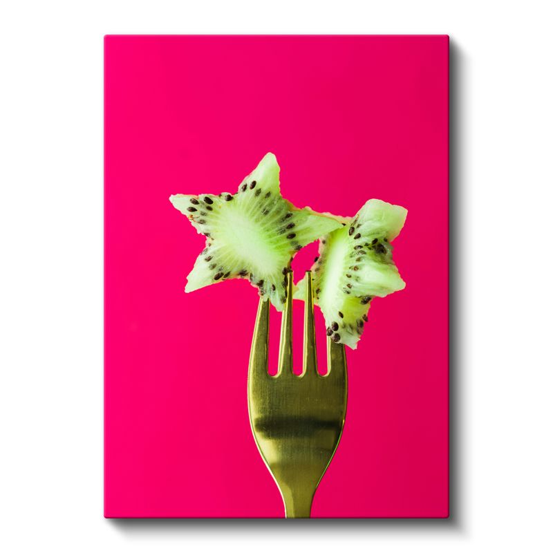 Kivi Yıldızı - Fuşya Fondaki Meyve Sanatı Kanvas Tablo