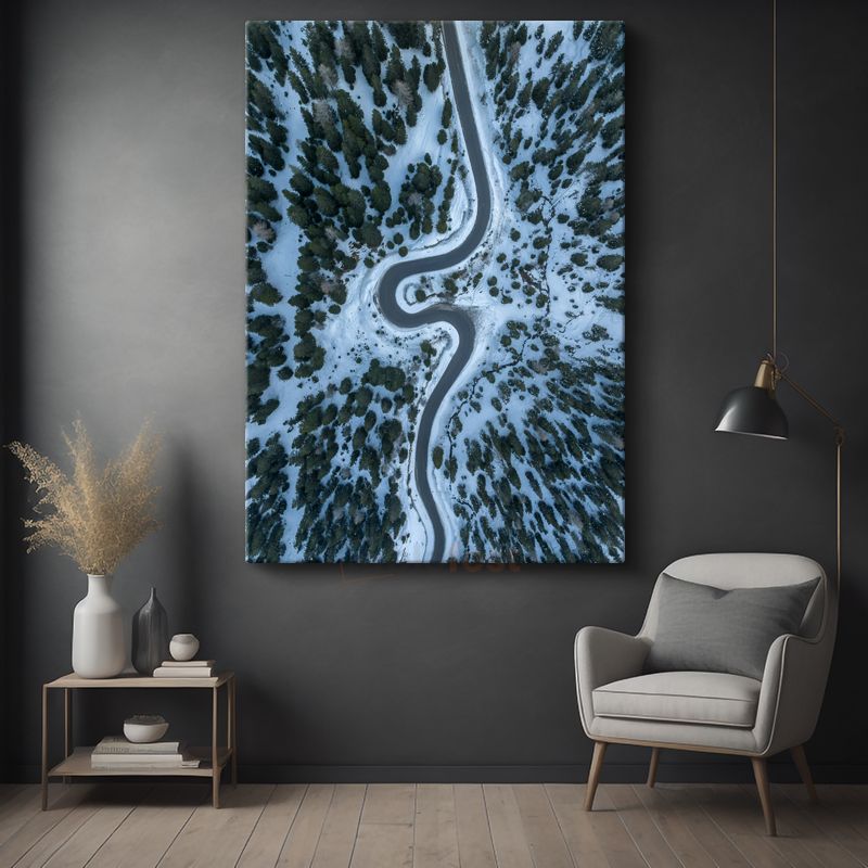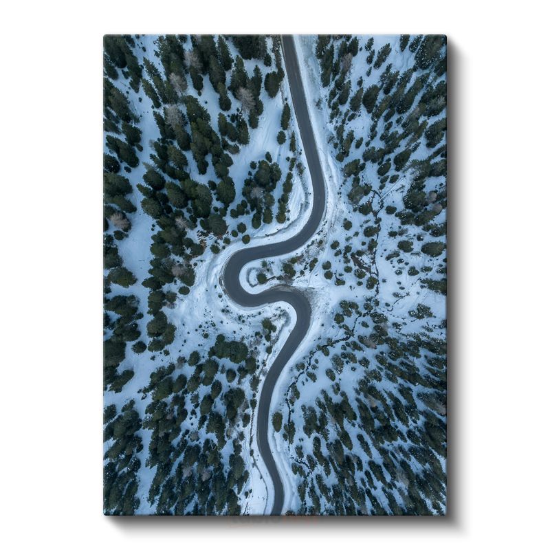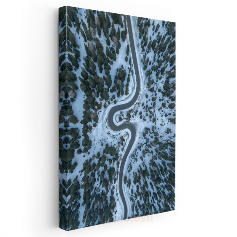 Kıvrımlı Yol - Karlı Orman Manzarası Kanvas Tablo