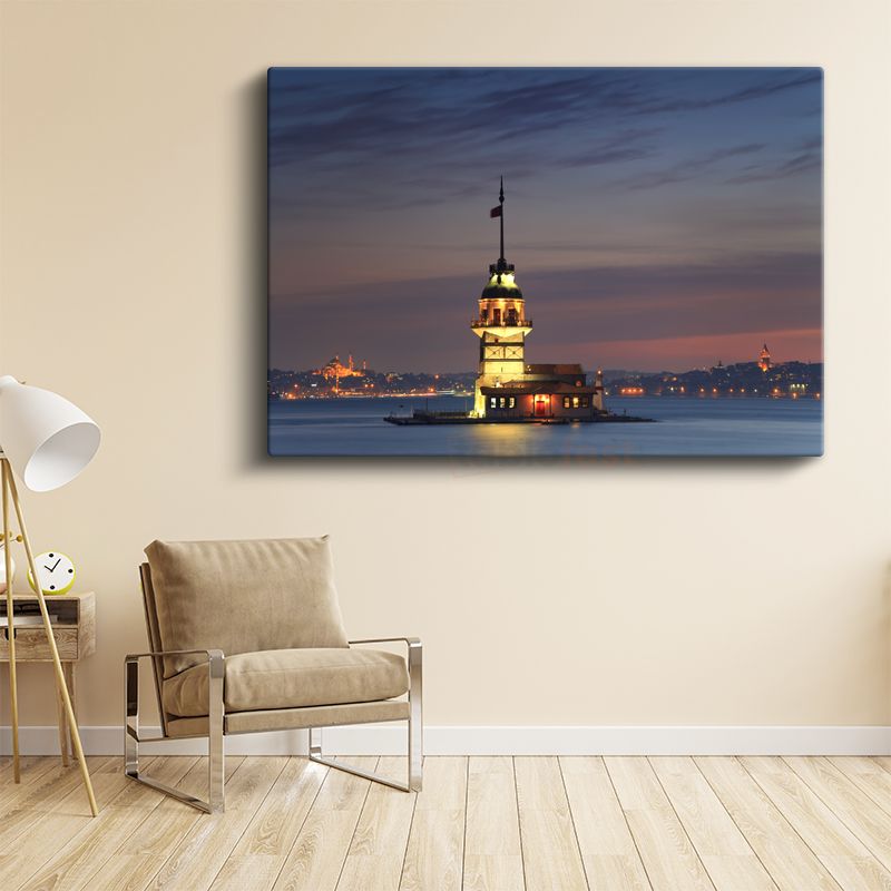 Kız Kulesi - Akşam Işıklarında Deniz Feneri Kanvas Tablo