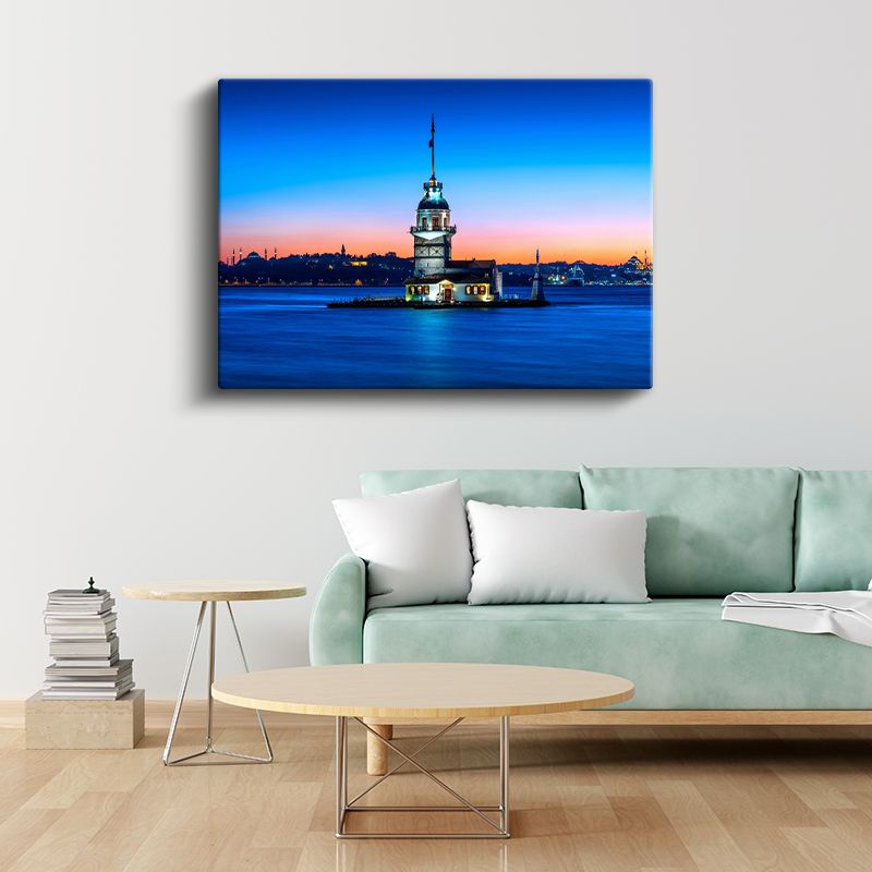 Kız Kulesi - Mavi Akşam Işığında Kanvas Tablo