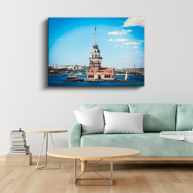 Kız Kulesi - Mavi Gökyüzü Altında Kanvas Tablo