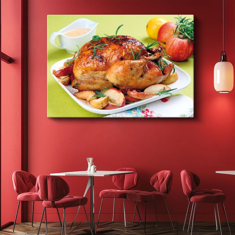 Kızarmış Tavuk - Elma Garnitürlü Fırın Tavuk Kanvas Tablo