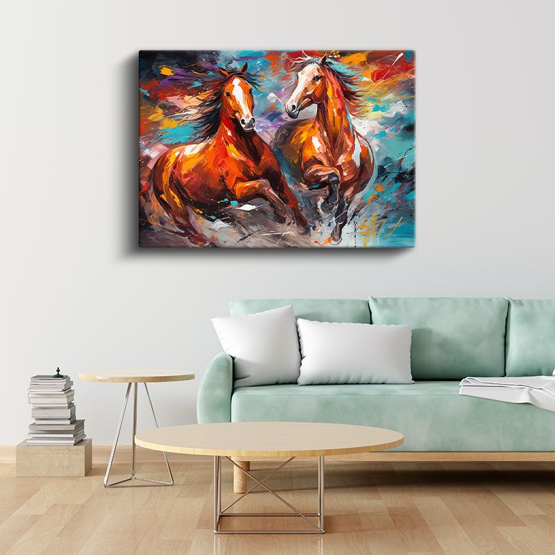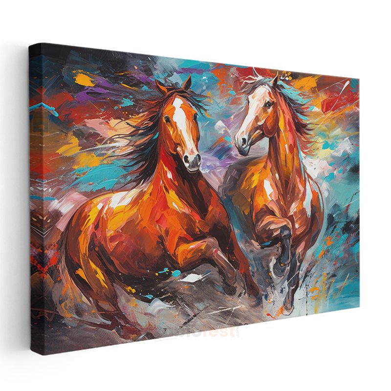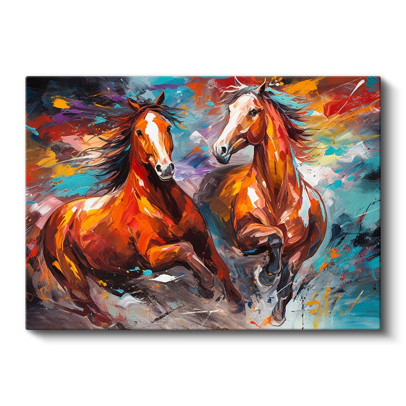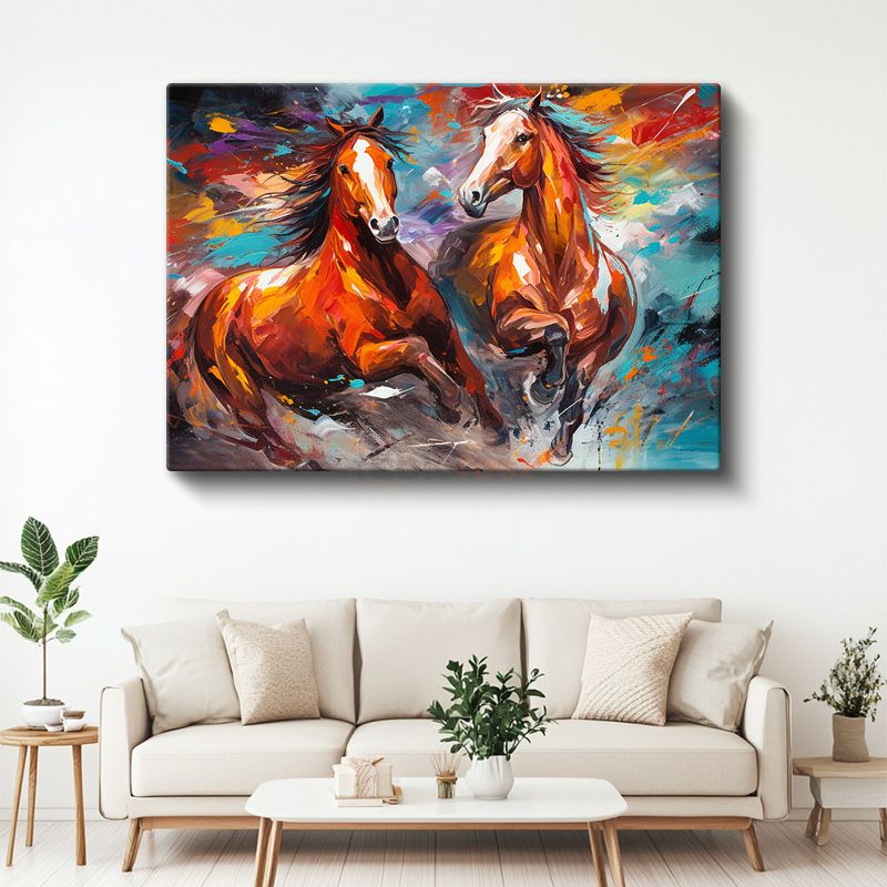 Kızıl Atlar - Renkli Fırça Darbeleriyle Özgür Koşu Kanvas Tablo