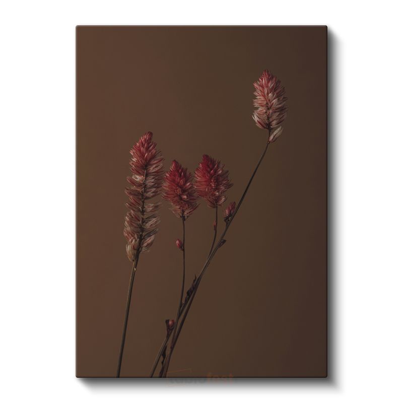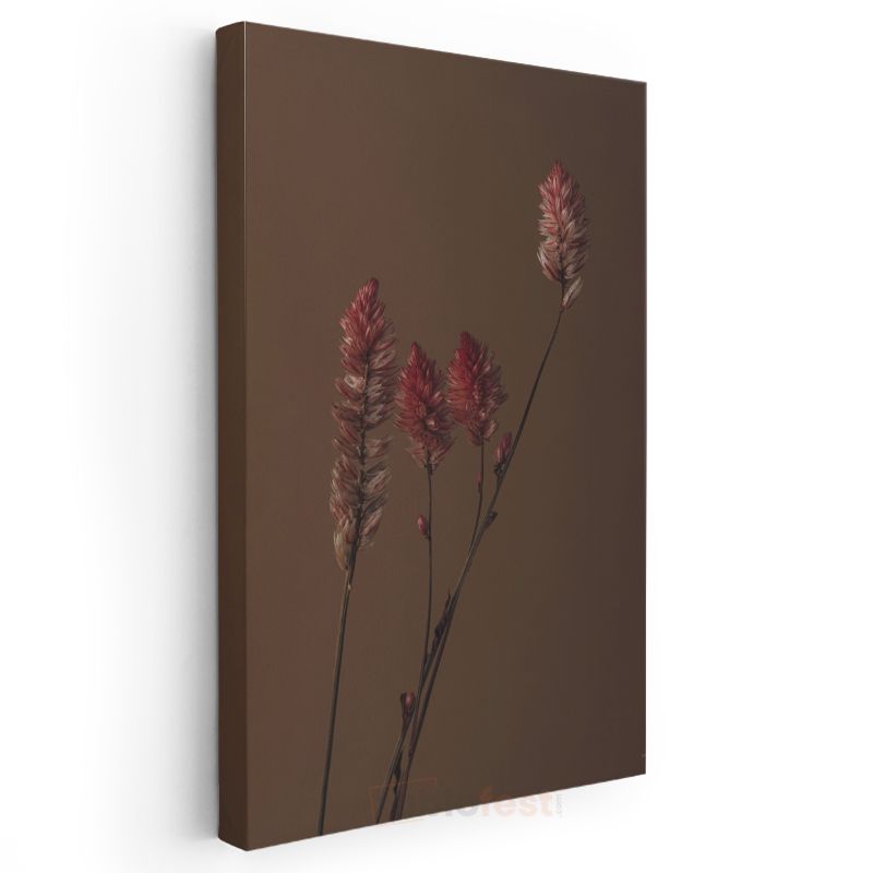 Kızıl Başaklar - Kahverengi Fonda Minimalist Bitki Silueti Kanvas Tablo
