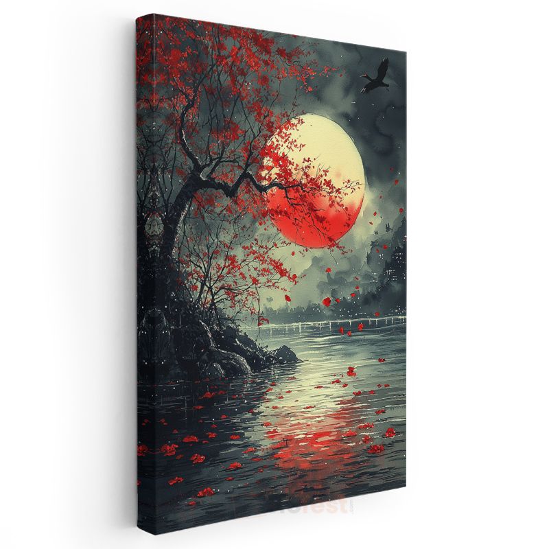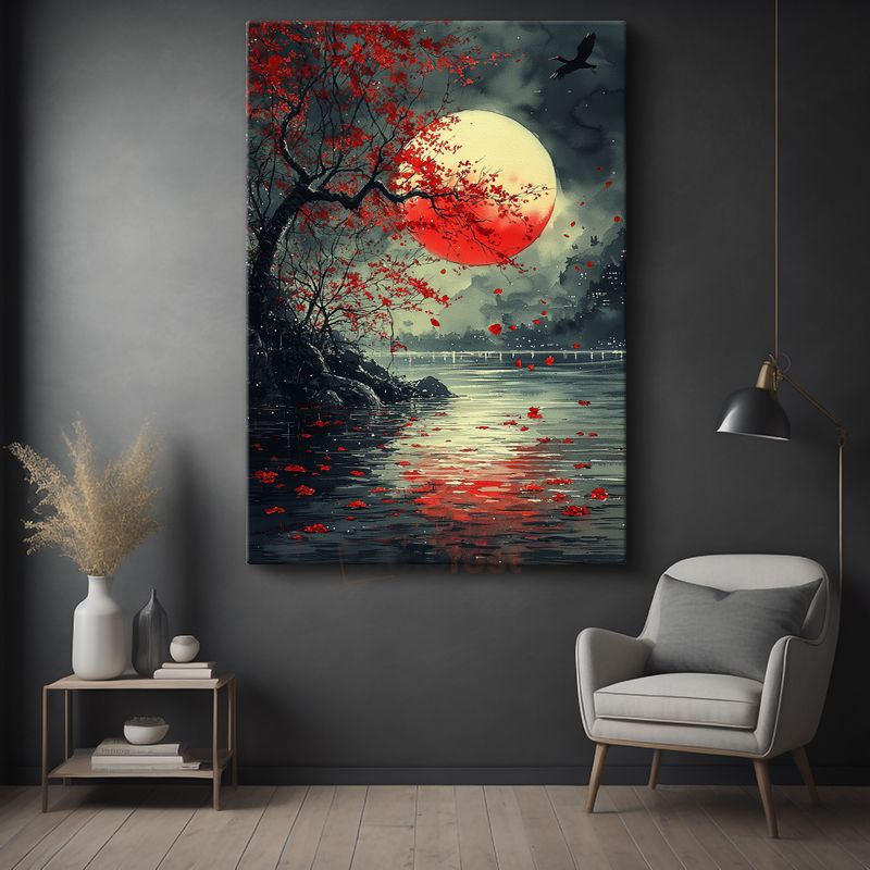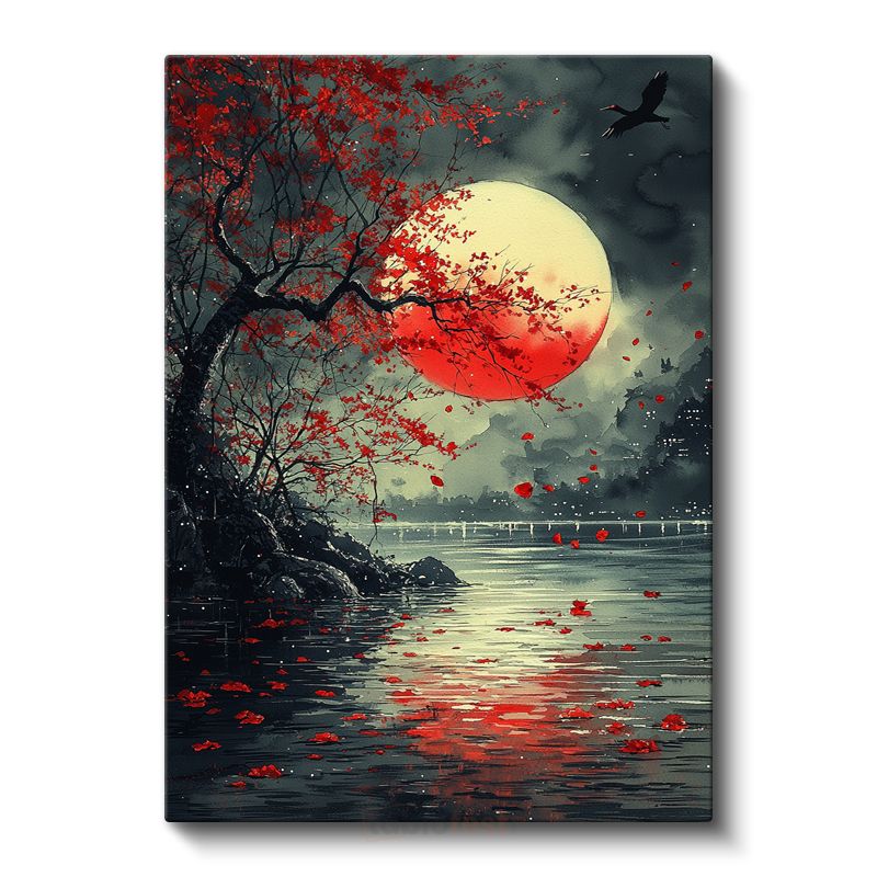 Kızıl Dolunay - Gece Sularında Yansıyan Mistik Ay Işığı Kanvas Tablo