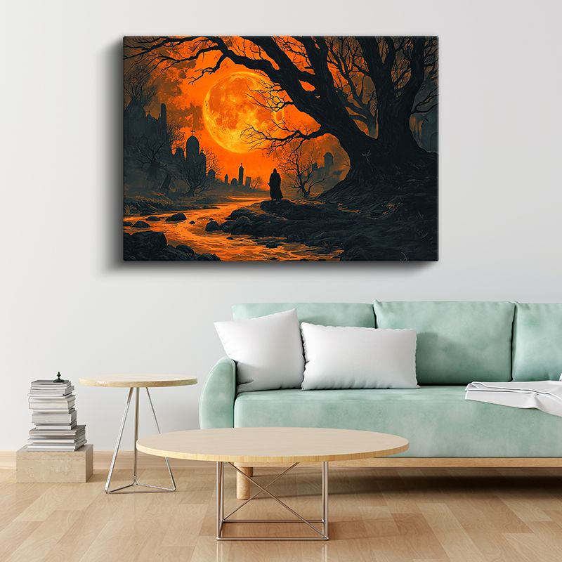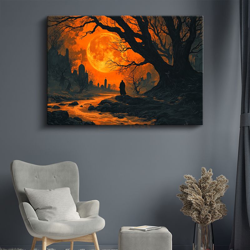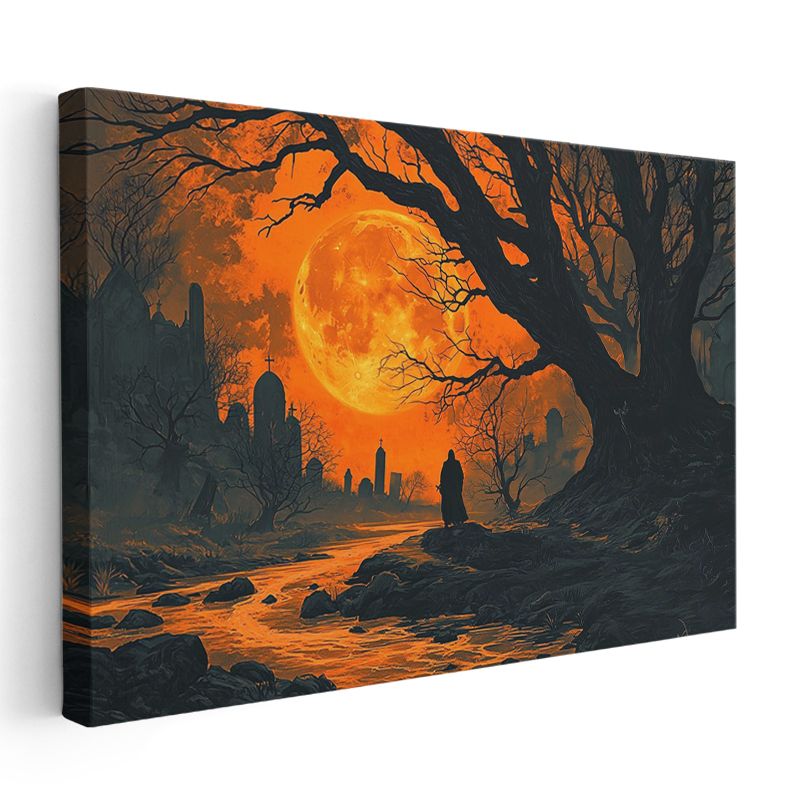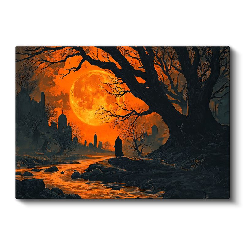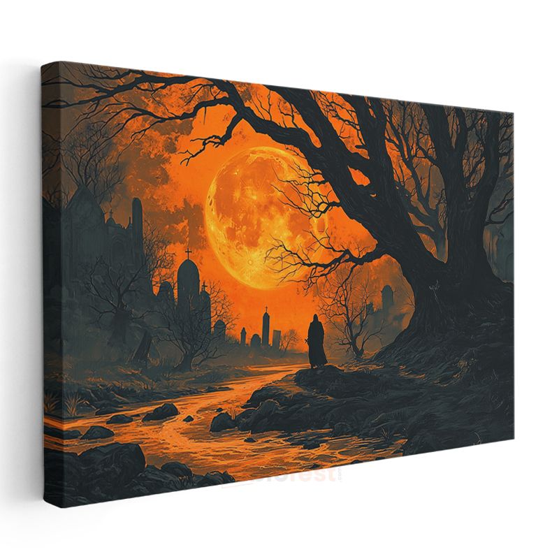 Kızıl Dolunay - Karanlık Patikada Yalnız Yolcu Kanvas Tablo