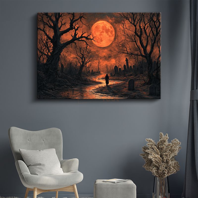 Kızıl Gece - Mezarlık Yolunda Yalnız Yolculuk Kanvas Tablo