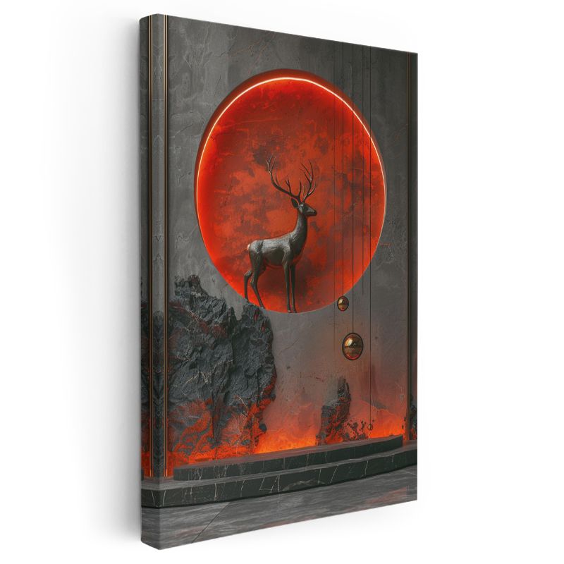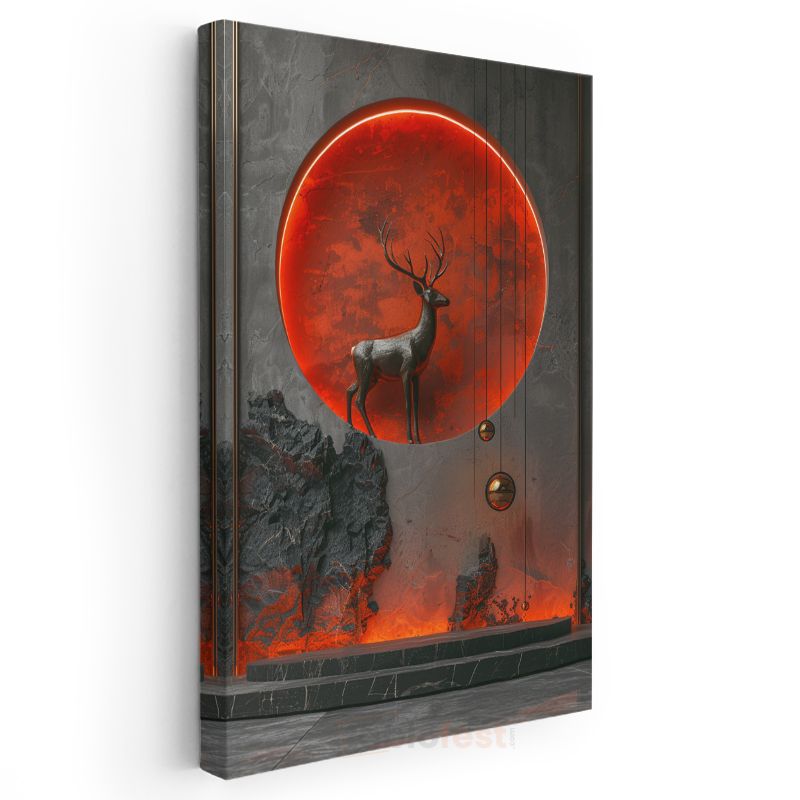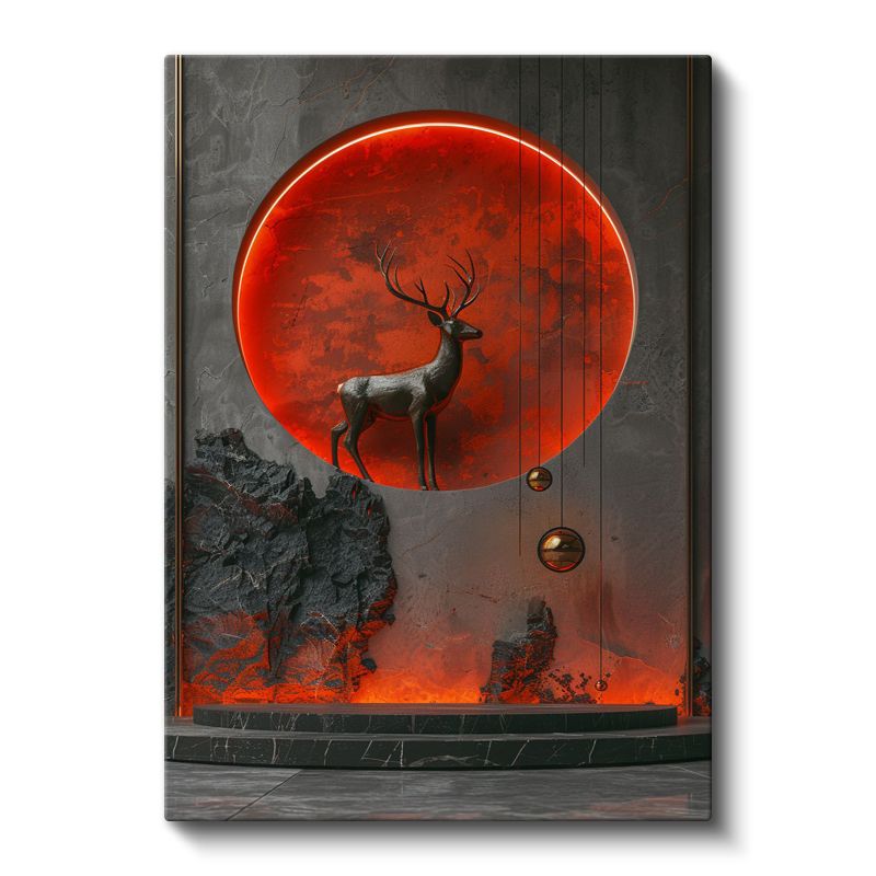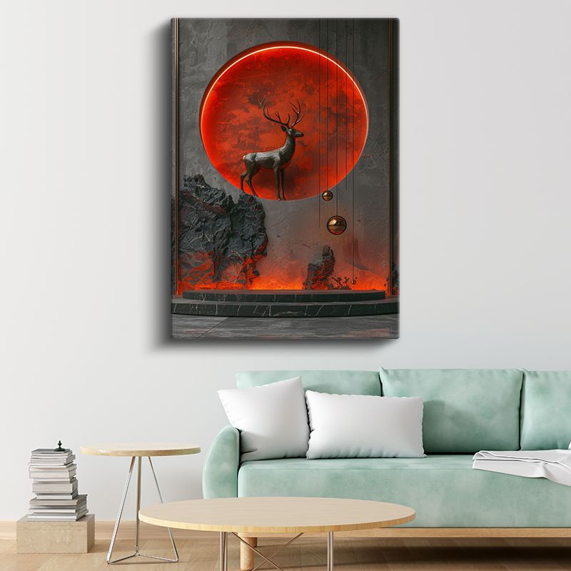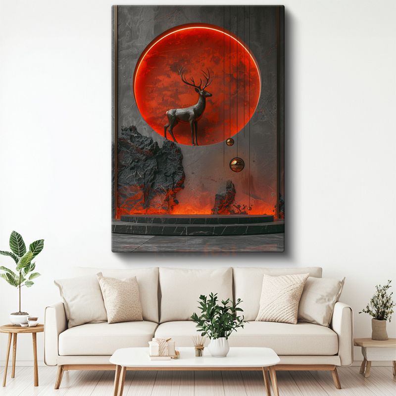 Kızıl Geyik - Parlak Ay Işığında Heybetli Duruş Kanvas Tablo