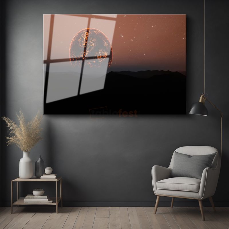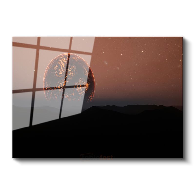Kızıl Gezegen - Dağların Üzerinde Yükselen Cam Tablo