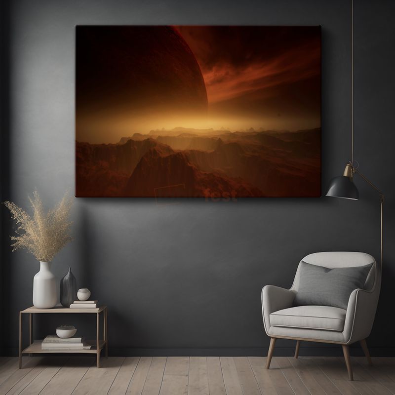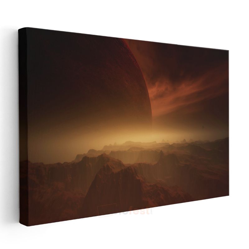 Kızıl Gezegen - Gizemli Dağ Silsilesi Üzerinde Doğan Işık Kanvas Tablo