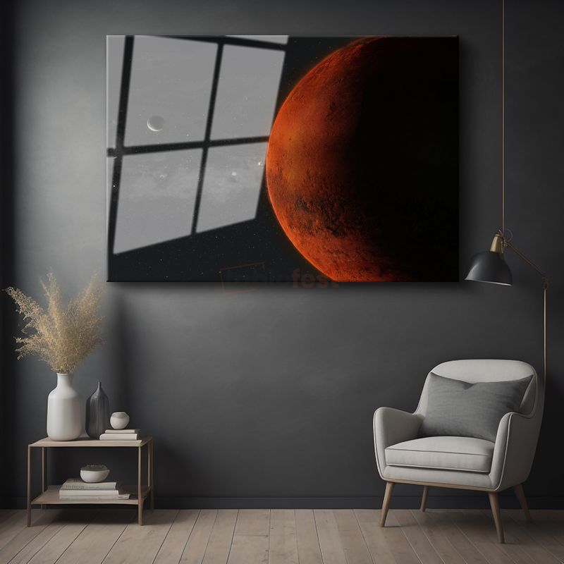 Kızıl Gezegen - Mars ve Uydusu Cam Tablo