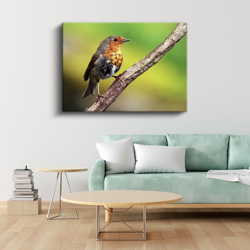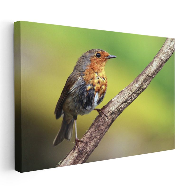 Kızıl Göğüslü Kuş - Dal Üzerinde Zarif Duruş Kanvas Tablo
