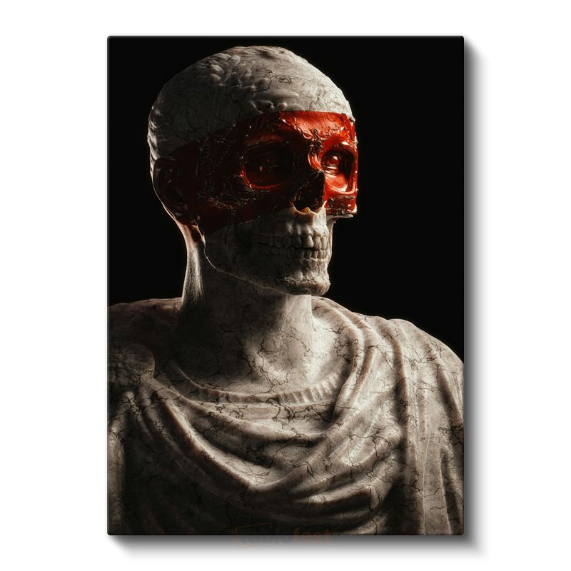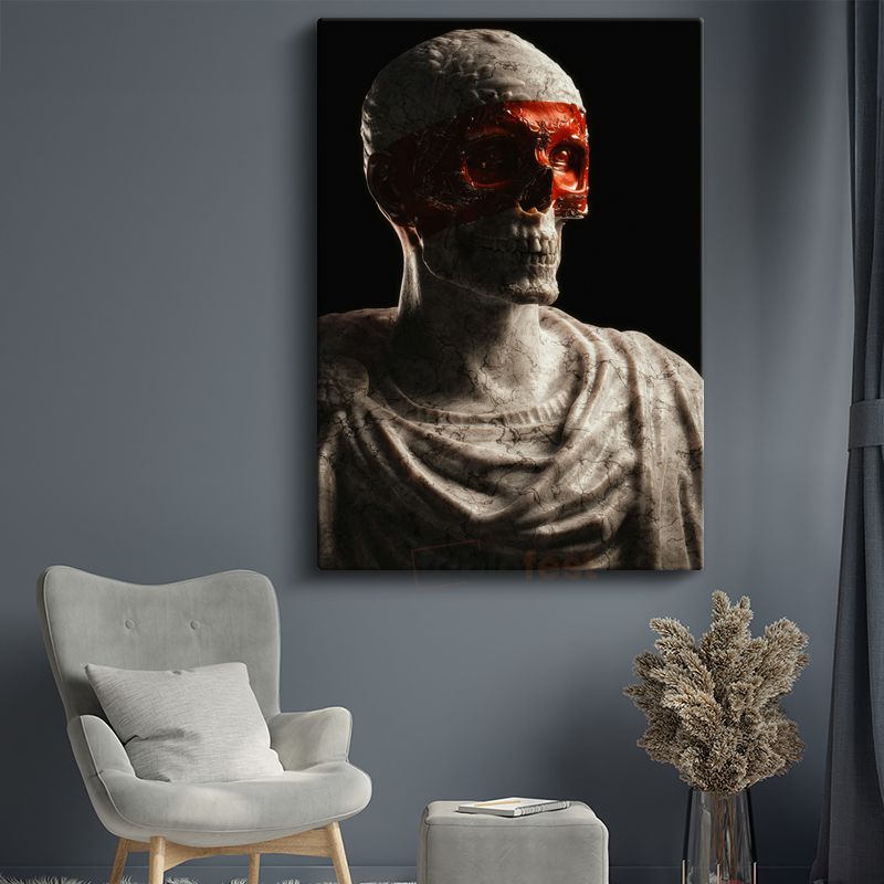 Kızıl Gözlü Büst - Mermer Dokulu Klasik Heykel Kanvas Tablo