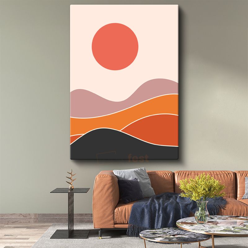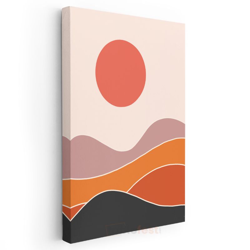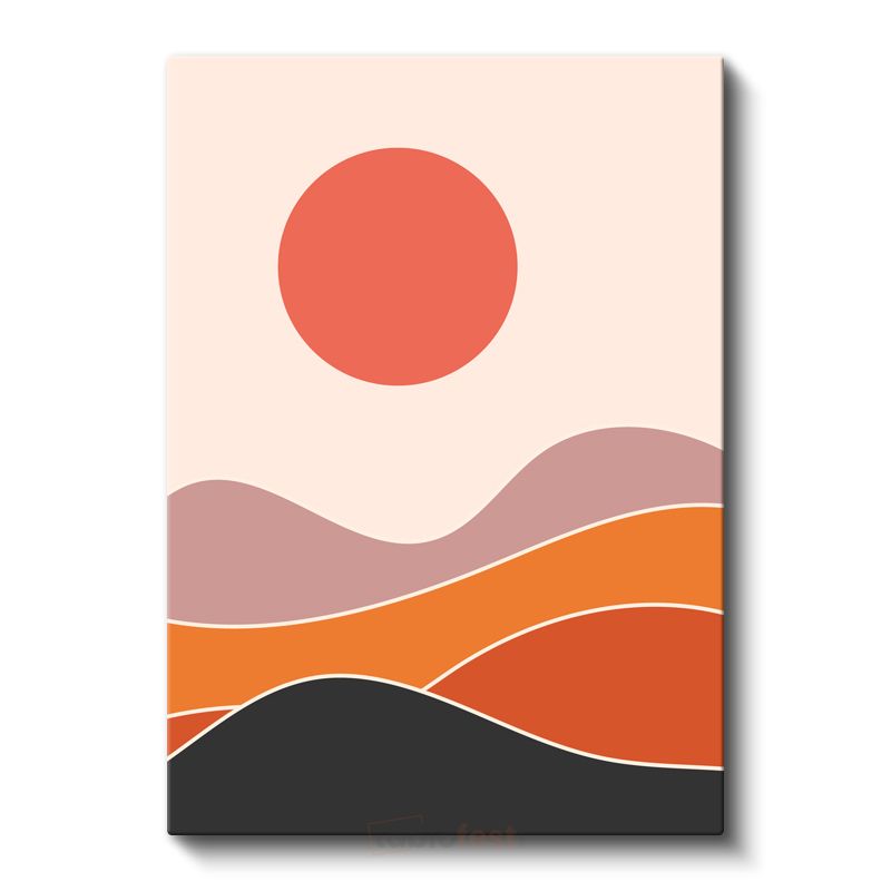 Kızıl Güneş - Minimalist Dalgalı Manzara Kanvas Tablo