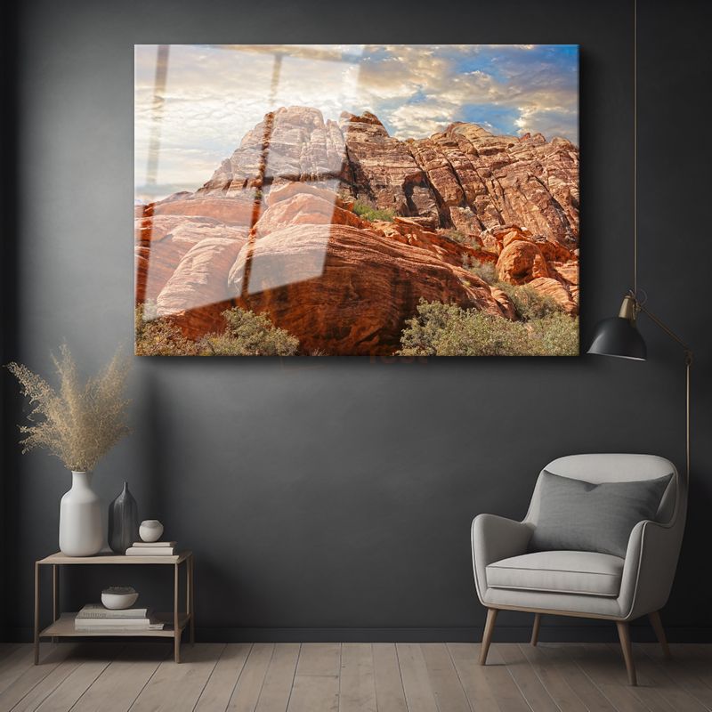 Kızıl Kayalıklar - Çöl Vadisi Manzarası Cam Tablo