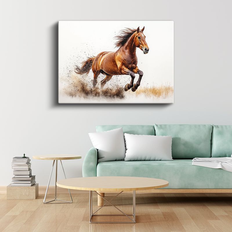 Kızıl Koşucu - Tozlu Arazide Özgür At Kanvas Tablo