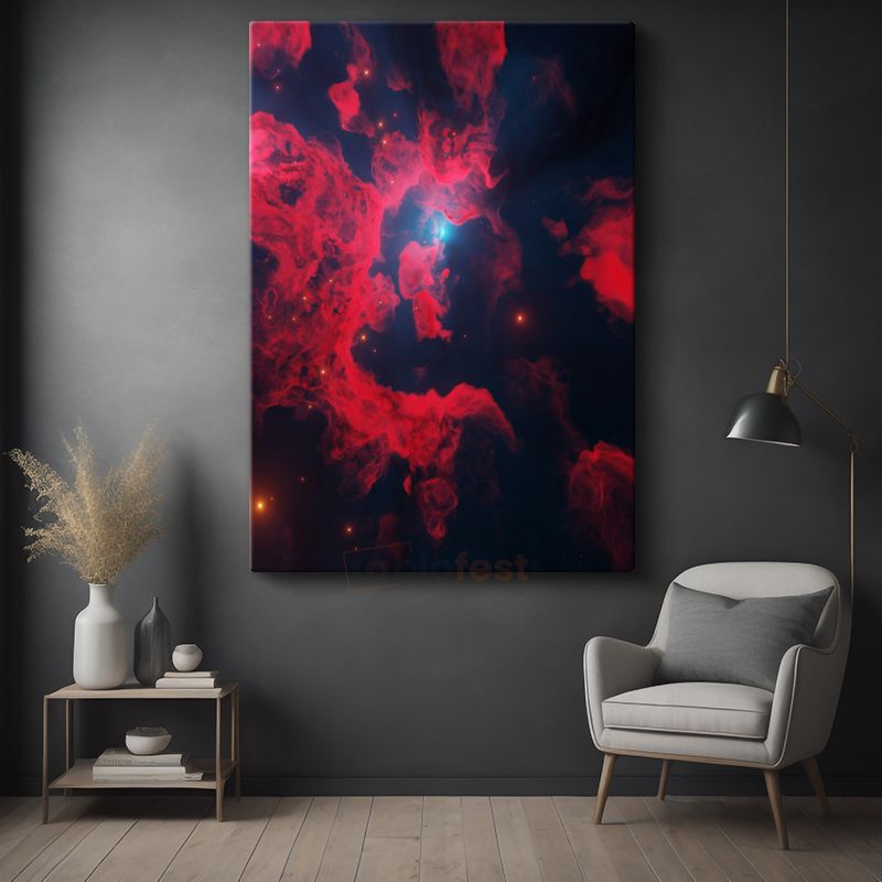 Kızıl Nebula - Kozmik Uzay Bulutu Kanvas Tablo