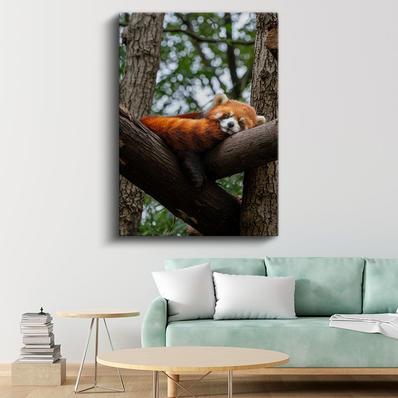 Kızıl Panda - Ağaç Dalında Huzurlu Uyku Kanvas Tablo