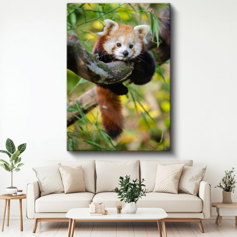 Kızıl Panda - Ağaç Dalında Meraklı Bakışlar Kanvas Tablo