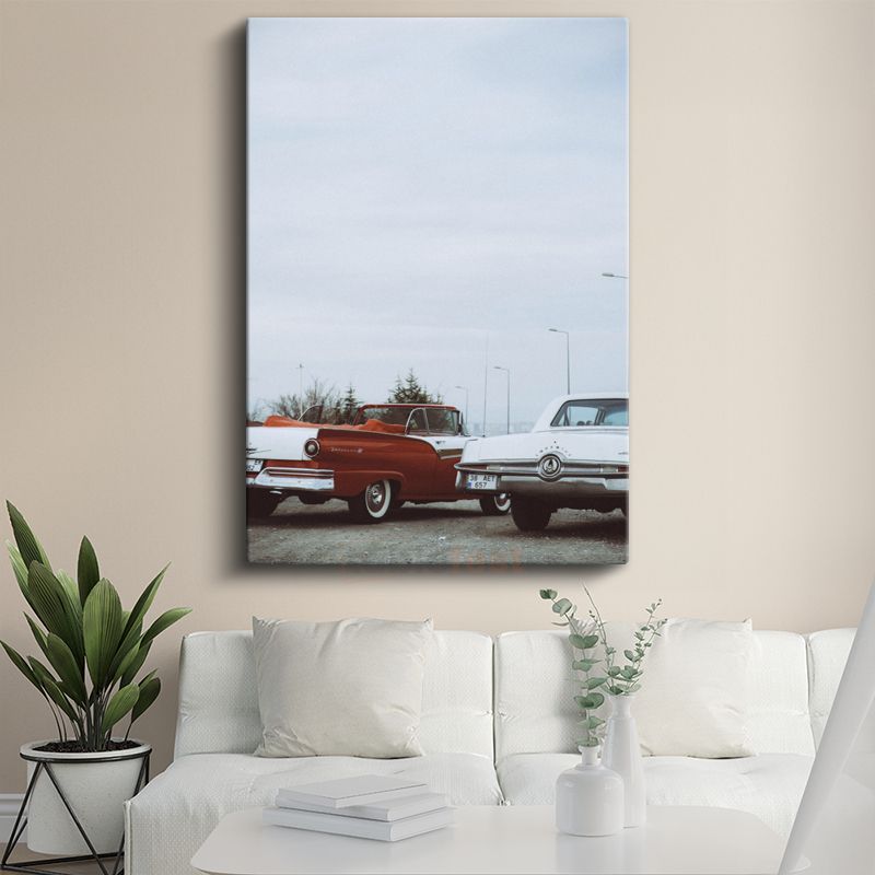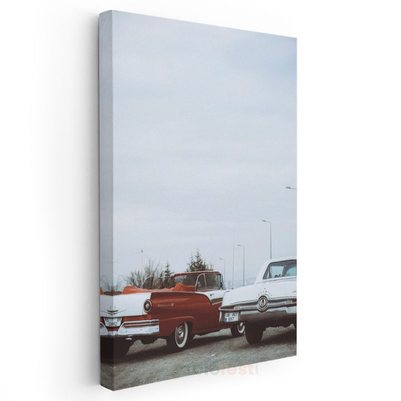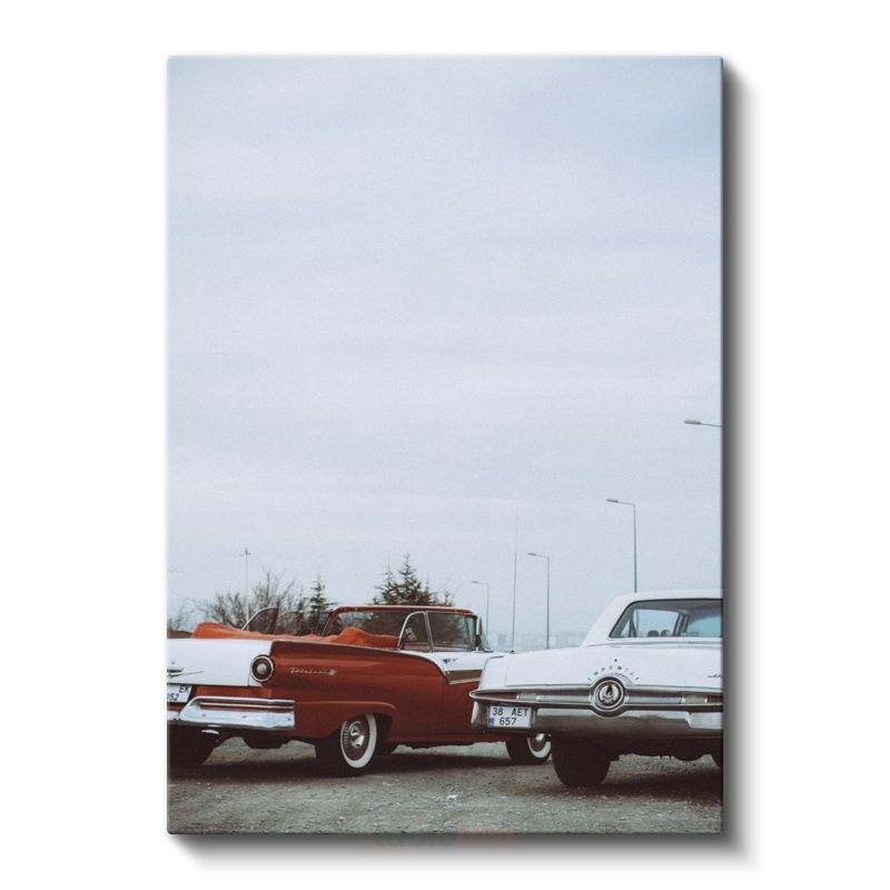 Klasik Amerikan Otomobilleri - Nostaljik Kırmızı Beyaz İkili Kanvas Tablo