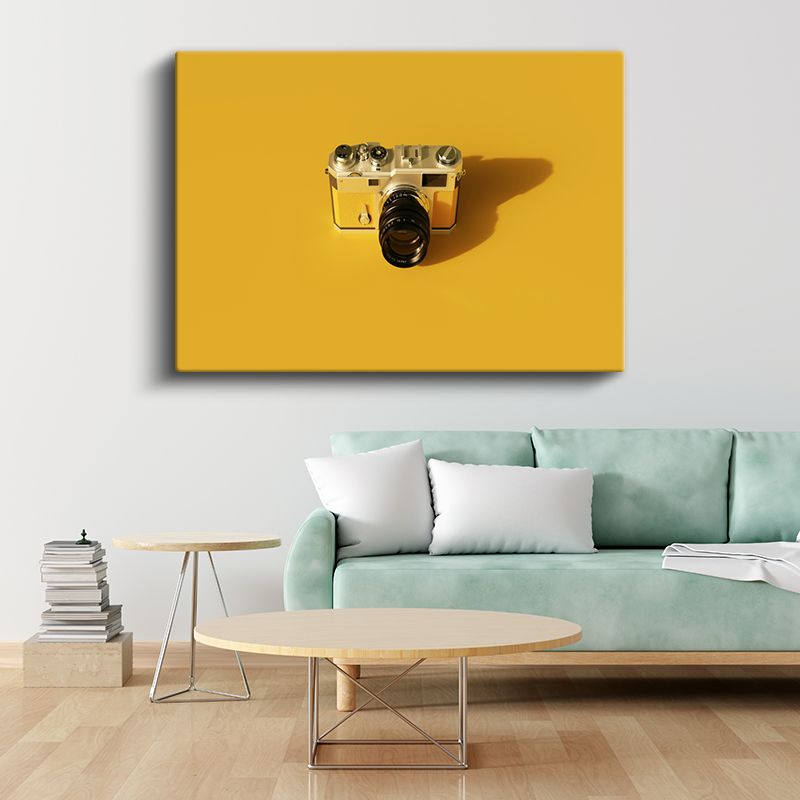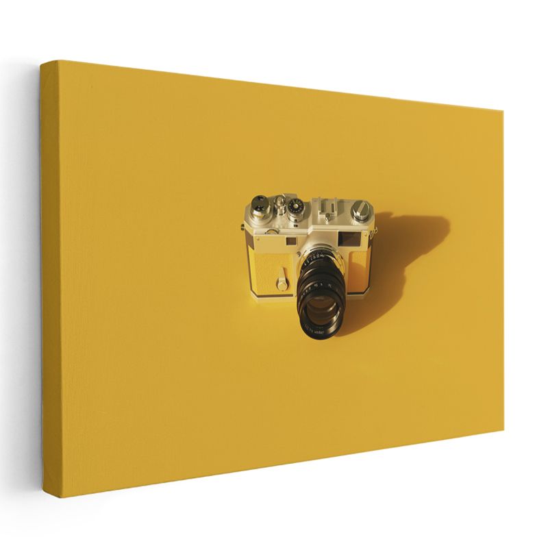 Klasik Analog Fotoğraf Makinesi - Sarı Fonlu Retro Çekim Aleti Kanvas Tablo