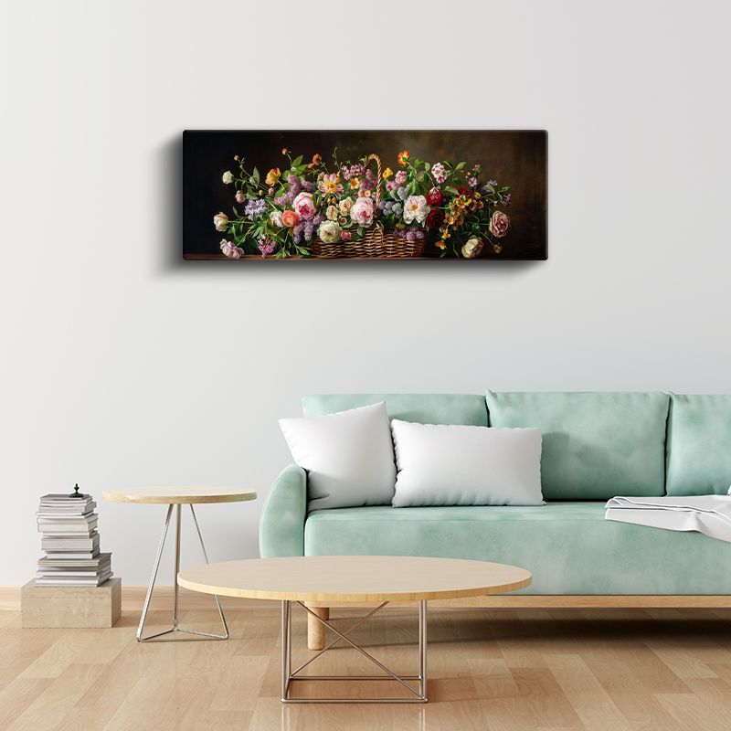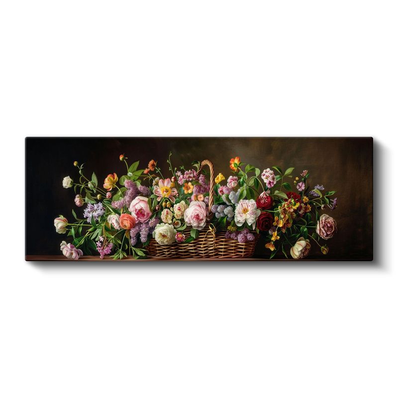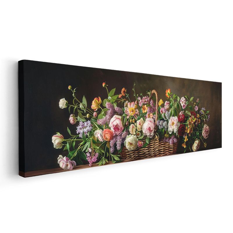 Klasik Çiçek Sepeti - Zengin Renk Paletli Natürmort Kompozisyon Kanvas Tablo