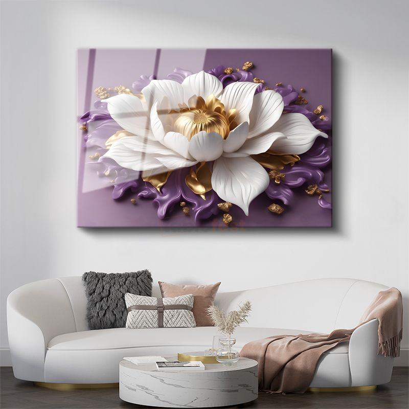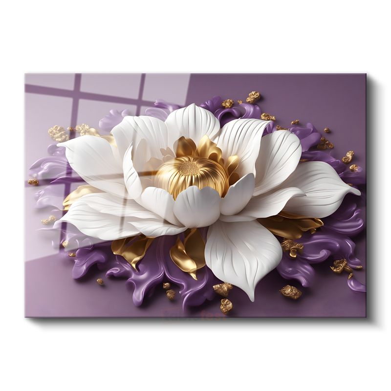 Klasik Çiçekler - Pastel Tonlu Şakayık ve Gül Buketi Cam Tablo