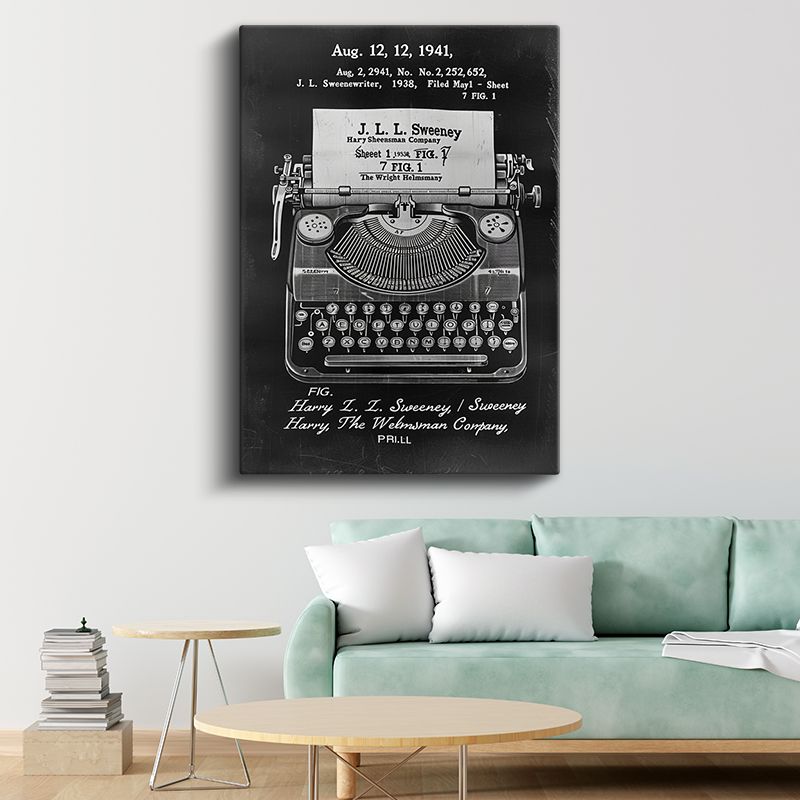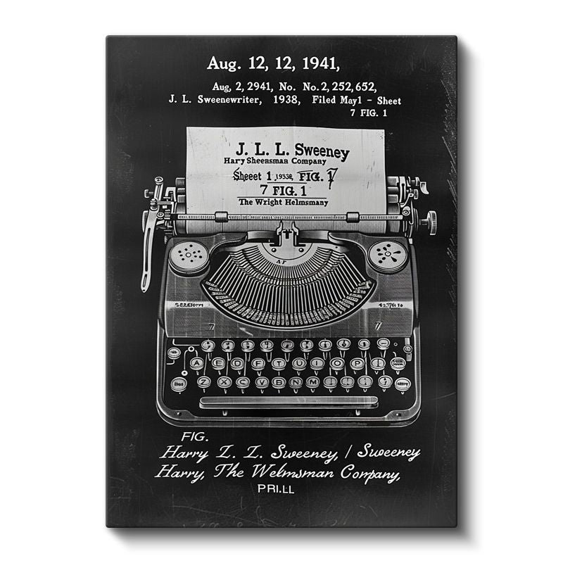 Klasik Daktilo - 1938 J.L. Sweeney İmzalı Tasarım Kanvas Tablo