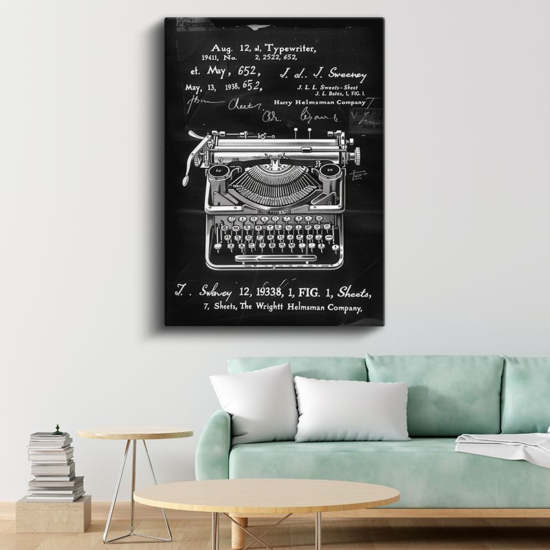 Klasik Daktilo - 1941 Patent Tasarımı Kanvas Tablo