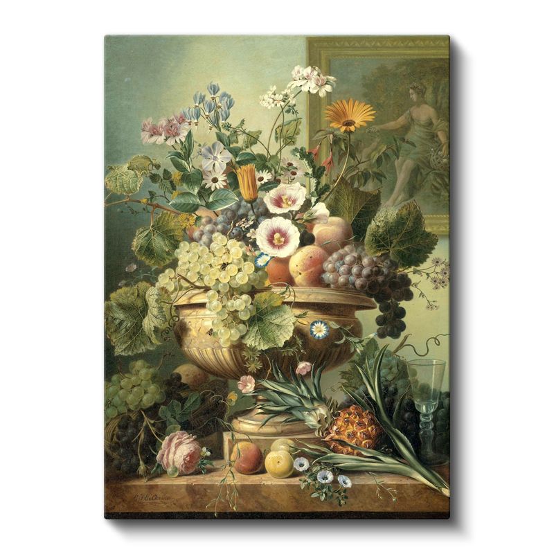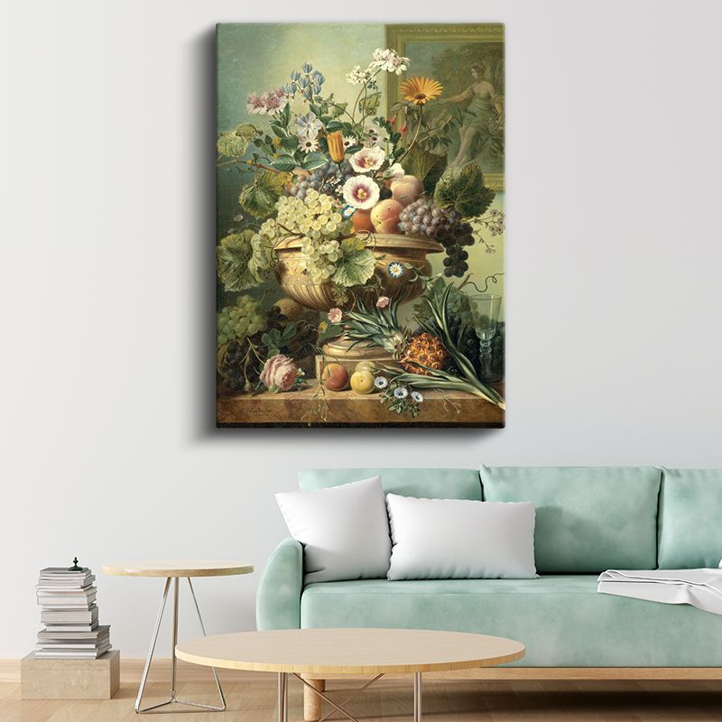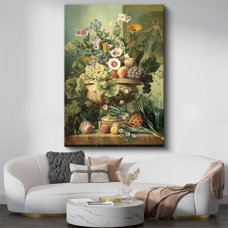 Klasik Meyve ve Çiçek - Zengin Detaylı Natürmort Kanvas Tablo