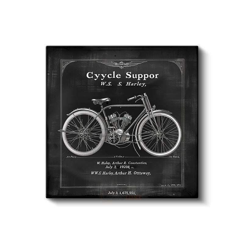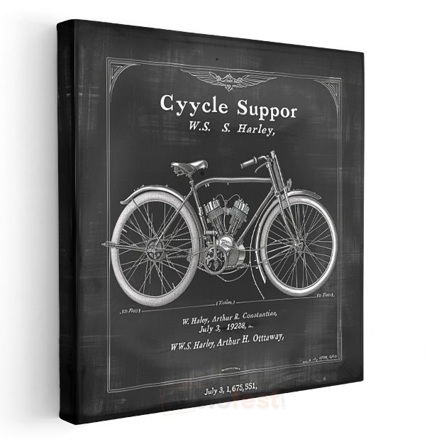 Klasik Motosiklet Şeması - W.S. Harley İmzalı Kanvas Tablo