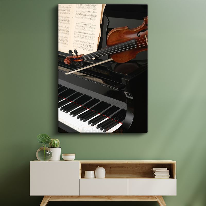Klasik Müzik Enstrümanları - Piyano ve Keman Uyumu Kanvas Tablo