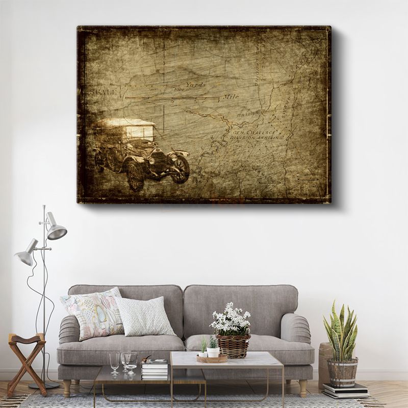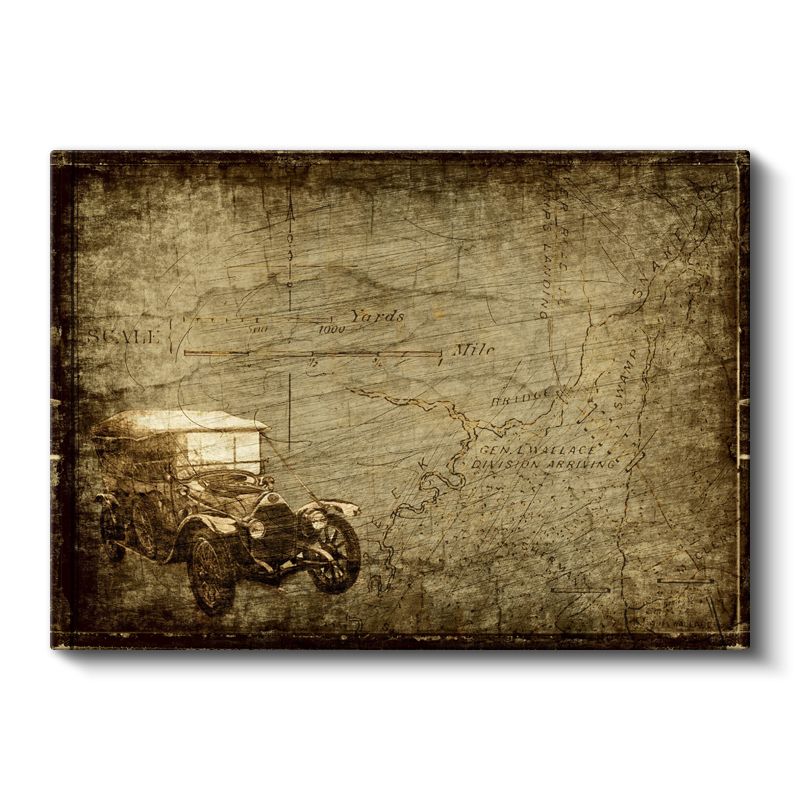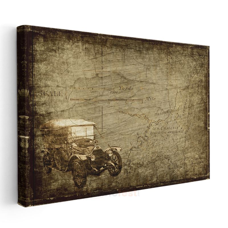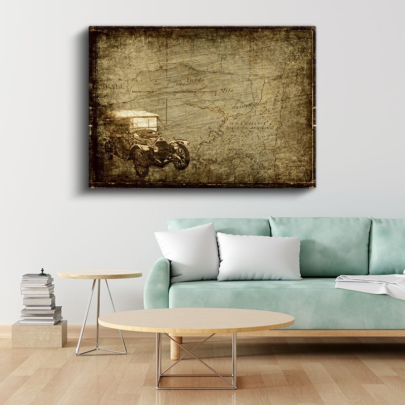 Klasik Otomobil - Eski Harita Üzerinde Yolculuk Kanvas Tablo
