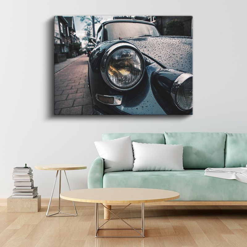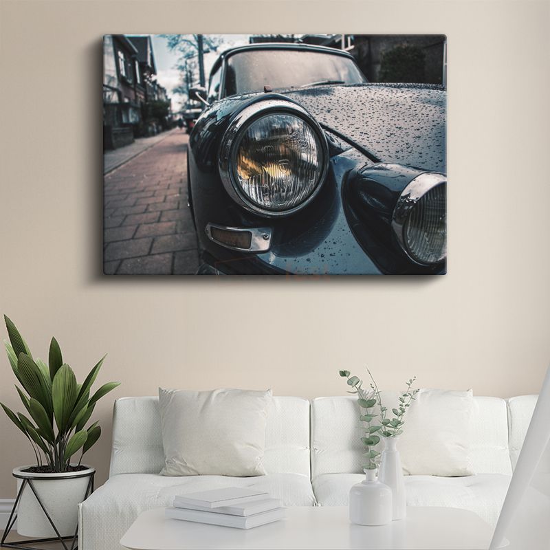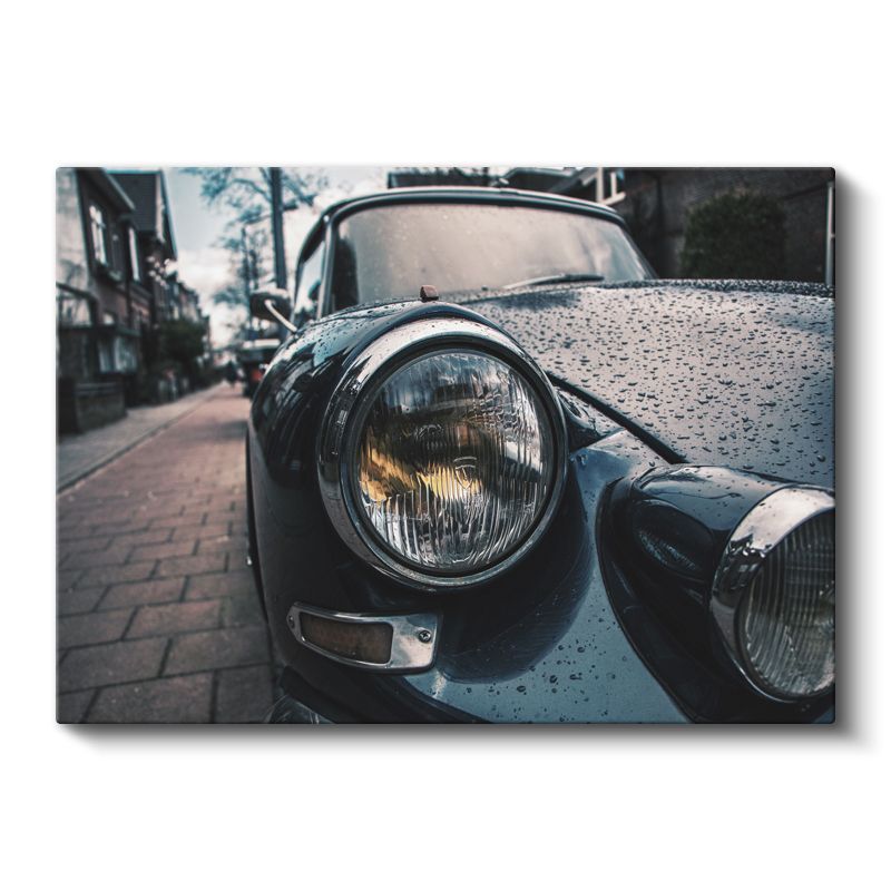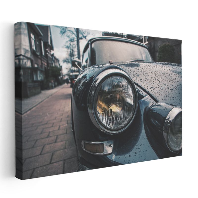 Klasik Otomobil Farı - Yağmur Damlalarıyla Nostaljik Detay Kanvas Tablo