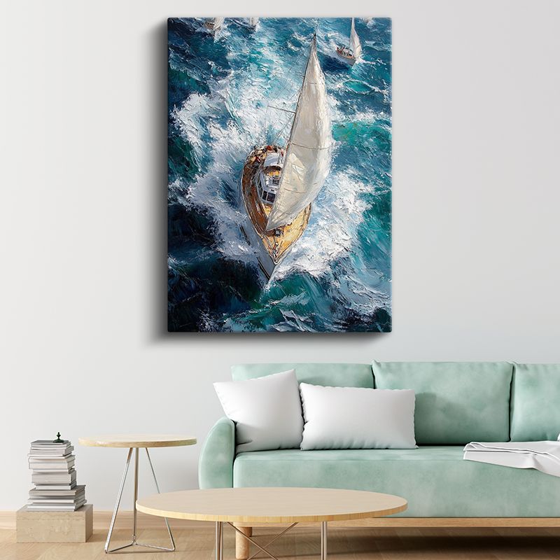 Klasik Yelkenli - Fırtınalı Denizde Macera Kanvas Tablo